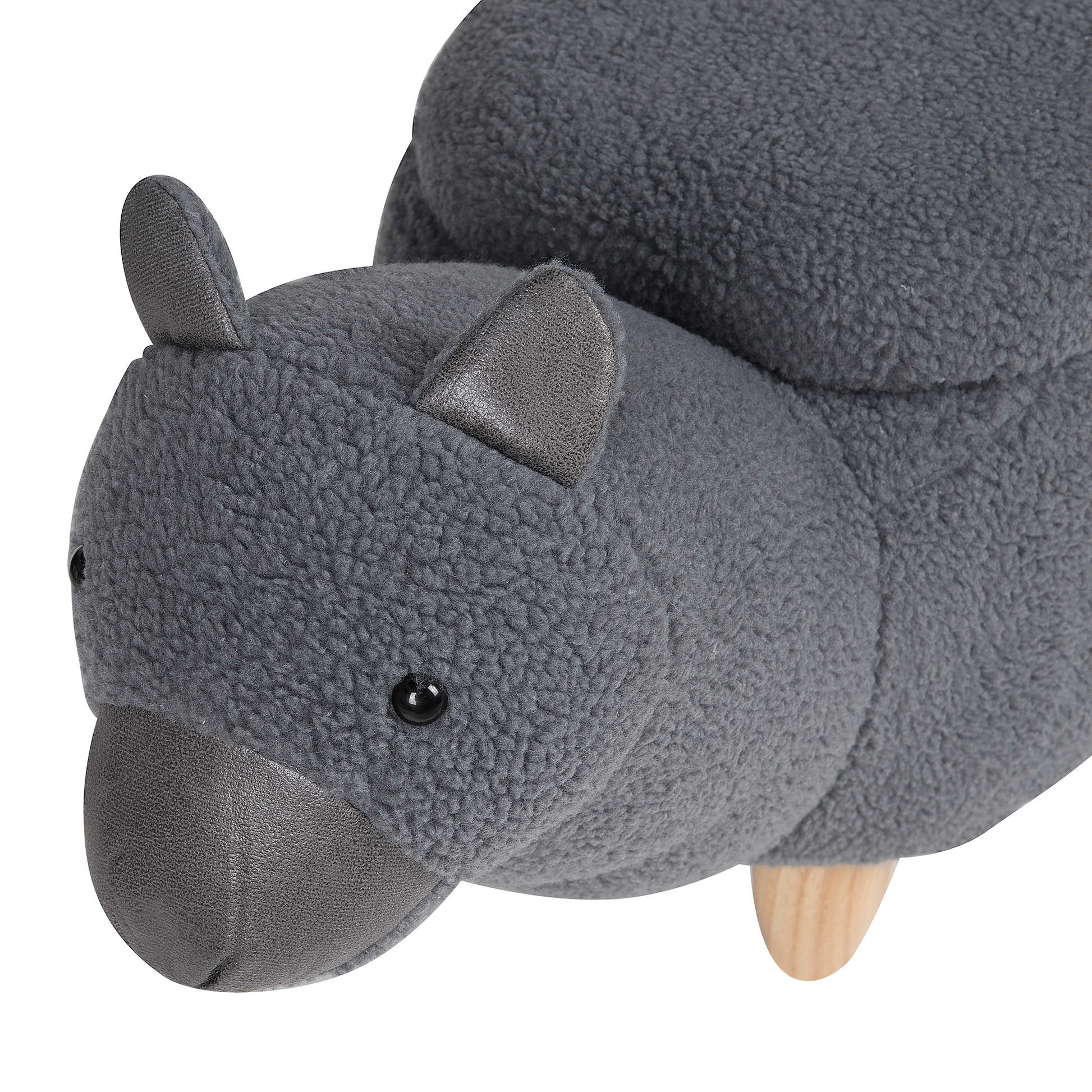 Ein süsses Wohnaccessoire, das vor allem Ihren kleinen Mitbewohnern gefallen wird. Dieser Tierhocker in lustiger Alpaka-Form ist mit einem weichen, dunklen Stoff bezogen, der für Gemütlichkeit sorgt, die vier stabilen und dennoch dezenten Füsse aus Gummibaumholz hingegen verschaffen dem Möbelstück die gewünschte Standfestigkeit. Im Inneren des Hockers können Kleinigkeiten und Spielzeuge blickdicht aufbewahrt werden. Zudem besitzt er kleine Knopfaugen aus Kunststoff. Material: Polyester. Zusätzliches Material: Gummibaumholz. Material Zusammensetzung: 50 % Baumwolle, 50 % Polyester Gewicht: 4 Montage: Beine / Füsse nicht montiert Holzursprung: China Gewichtskapazität: 120 Beine Höhe: 13 Das Angebot beinhaltet: 1 x Hocker Sitzfläche: 30x40 Höhe: 45 Gestalten: Tier Breite: 65 Tiefe: 30 Art: Hocker Stil: Modern Allgemeine Farbe: Grau Muster: Kein Muster Hauptmaterial: Polyester