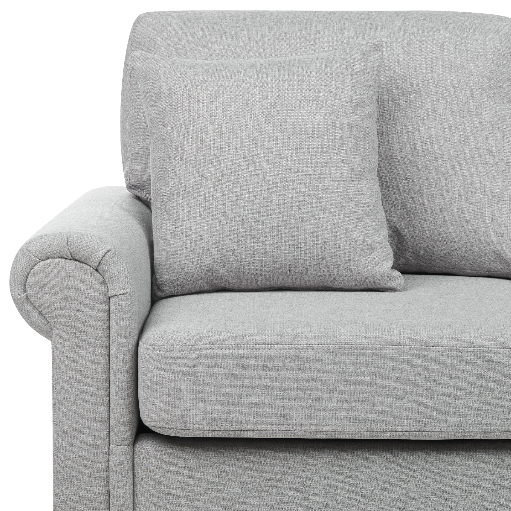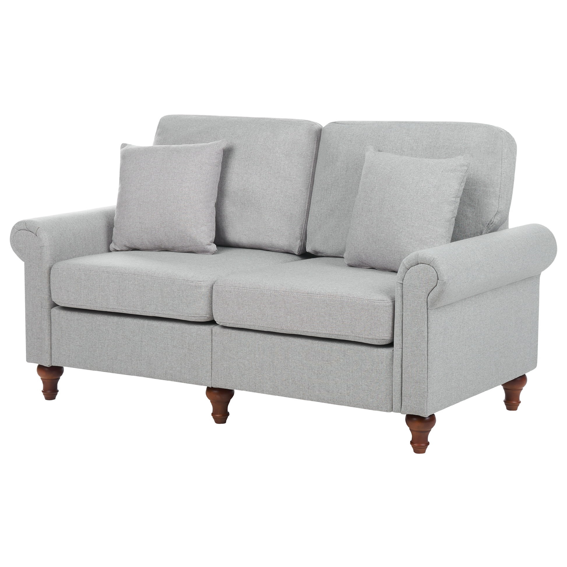 Ein viktorianischer Klassiker für Ihr Wohnzimmer. Dieses ausserordentlich elegante Sofa in traditioneller, schöner Form besitzt eine gemütlich weiche Polsterung mit einem strapazierfähigem Stoffbezug und gedrechselten Holzbeinen. Der robuste Rahmen aus Eukalyptusholz und die Füsse aus Eichenhholz sorgen für optimale Stabilität. Die dick gepolsterten Kissen mit abnehmbaren Bezügen sind auf den Sitzen und den Rückenlehnen zu finden. Zudem garantiert die breite Sitzfläche angenehmen Sitzkomfort und die abgerundeten Armlehnen machen das Sofa zum glamourösen Hingucker im Raum. Material: Polyester. Zusätzliches Material: Eichenholz, Eukalyptus. Material Zusammensetzung: 100% Polyester Gewicht: 42 Kapazität: 2 Personen Montage: Teilweise montiert Holzart: Eucalyptus deglupta Holzursprung: China Kissen Abmessungen: 40x40 Beine Höhe: 12 Polsterstärke: 14 Sitzhöhe: 44 Das Angebot beinhaltet: 1 x Sofa, 2 x Zierkissen Sitzfläche: 120x53 Höhe: 84 zusätzliche Information: Die Beine befinden sich in einer praktischen Tasche unter dem Sitz. Breite: 154 Tiefe: 76 Art: 2 Sitzer Sofa Stil: Klassisch Allgemeine Farbe: Grau Schatten: Hellgrau Muster: Ohne Muster Hauptmaterial: Polyester Füllmaterial: Schaumstoff Arm Stil: Abgerundet