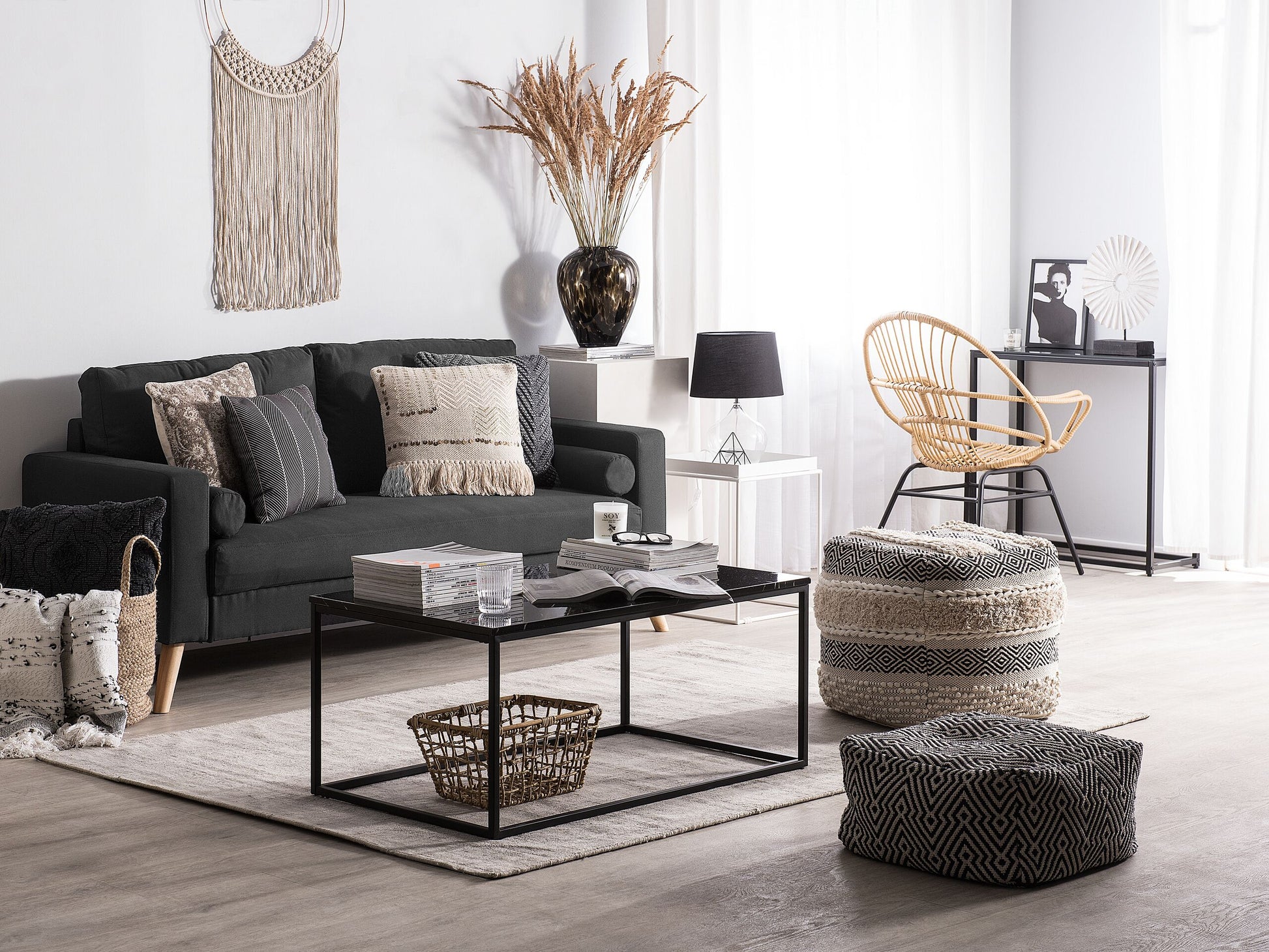 Auf diesem einladend breiten Polstersofa mit einem strapazierfähigen Stoffbezug macht der gemütliche Feierabend noch mehr Spass. Dicke, lose Rückenkissen mit dekorativer Knopfverzierung und zwei zusätzliche Nackenrollen sorgen für Komfort und Behaglichkeit, während die hellen Holzbeine den Retro-Charme des Sofas zur Geltung bringen. Material: Polyester. Zusätzliches Material: Gummibaumholz. Material Zusammensetzung: 100% Polyester Gewicht: 34 Kapazität: 2 Personen Montage: Nicht montiert Holzart: Hevea brasiliensis Holzursprung: China Kissen Abmessungen: 76x45 Beine Höhe: 18 Polsterstärke: 16 Sitzhöhe: 44 Das Angebot beinhaltet: 1 x Zweisitzer, 2 x Zierkissen Sitzfläche: 157x50 Höhe: 88 zusätzliche Information: Die Beine befinden sich in einer praktischen Tasche unter dem Sitz. Breite: 182 Tiefe: 74 Art: 2 Sitzer Sofa Stil: Modern Allgemeine Farbe: Schwarz Muster: Ohne Muster Hauptmaterial: Polyester Füllmaterial: Schaumstoff Arm Stil: Gerade
