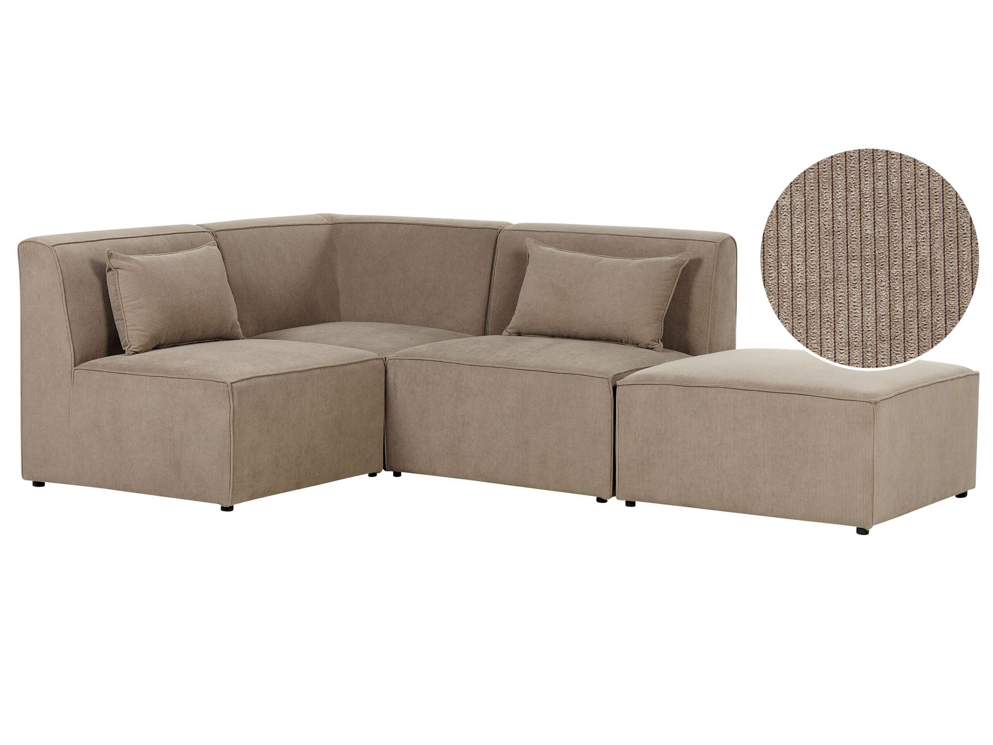 3-Sitzer Ecksofa Cord taupe rechtsseitig mit Ottomane LEMVIG