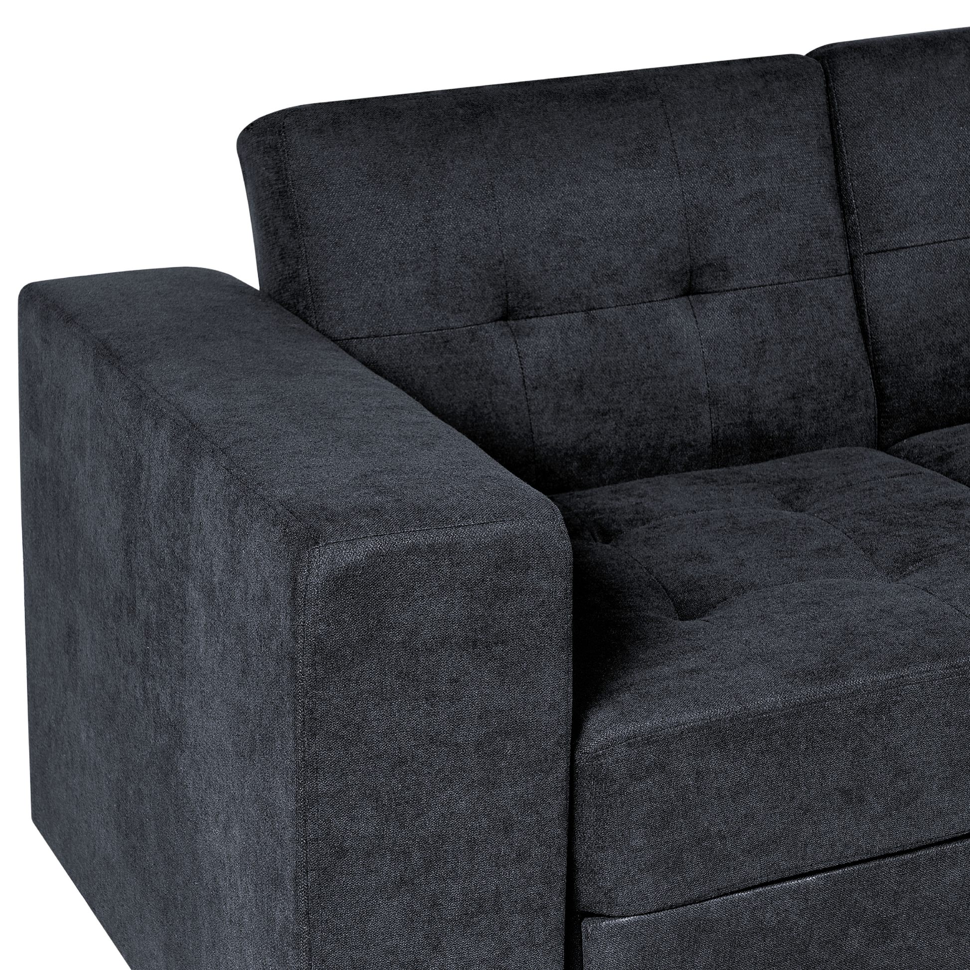 Dieses Sofa bietet funktionale Lösungen für jeden Wohnraum mit begrenztem Platz. Es verfügt über eine verstellbare Rückenlehne für einen schnellen Umbau in einen zusätzlichen Schlafplatz und ein Drop-Down-Tablett mit Getränkehalter. Mit den geräumigen Bettkasten können Sie Ihre Bettwäsche und anderes Zubehör ausser Sichtweite aufbewahren. Die Ottomane eignet sich hervorragend als Sofateil, kann aber auch an jeder anderen Stelle platziert werden, da sie nicht fixiert ist. Material: Polyester. Zusätzliches Material: Kunststoff, Eukalyptus. Material Zusammensetzung: 100% Polyester Gewicht: 57 Kapazität: 3 Personen Montage: Teilweise montiert Holzart: Eucalyptus robusta Holzursprung: China Beine Höhe: 3 Polsterstärke: 16 Osmanische Dimensionen: 94x40x41 Sitzhöhe: 41 Schlafende Oberfläche: 90x150 Das Angebot beinhaltet: 1 x Sofa, 1 x Ottomane, Nicht im Lieferumfang enthalten: Dekoration Sitzfläche: 190x54 Höhe: 75 Breite: 210 Tiefe: 94 Art: Schlafsofa Stil: Modern Allgemeine Farbe: Schwarz Hauptmaterial: Polyester Füllmaterial: Schaumstoff Arm Stil: Gerade