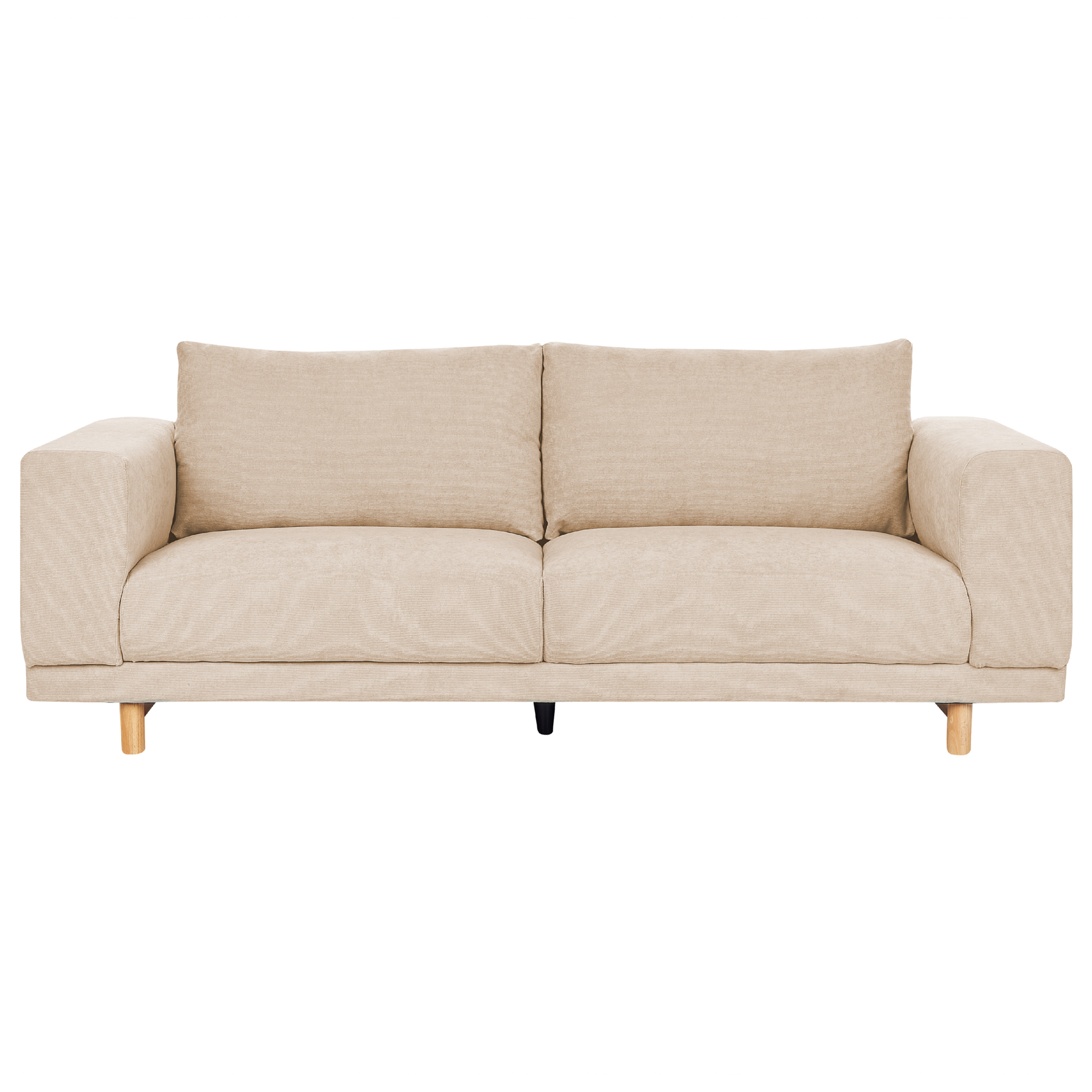 Dieses moderne Sofa bereichert Ihren Wohnraum mit einem nostalgischen Charme, indem es klassische, breite und symmetrische Designelemente nahtlos mit modernem Komfort und hochwertigen Materialien verbindet. Die Couch verfügt über stabile Holzbeine, eine tiefe Sitzfläche, dicke Rückenkissen und breite Armlehnen. So verspricht der 3-Sitzer einen besonders hohen Sitzkomfort, der ihn zum Lieblingsplatz der ganzen Familie werden lässt. Kombinieren Sie das Stoffsofa mit Möbeln und Accessoires im Mid-Century-Stil, um einen kompletten Look zu erhalten. Material: Cord. Zusätzliches Material: Gummibaumholz, Eukalyptus. Material Zusammensetzung: 100% Polyester Gewicht: 57 Kapazität: 3 Personen Montage: Beine / Füsse nicht montiert Holzart: Eucalyptus deglupta, Hevea brasiliensis Holzursprung: China Kissen Abmessungen: 92x39 Beine Höhe: 12 Polsterstärke: 28 Sitzhöhe: 40 Das Angebot beinhaltet: 1 x Dreisitzer Sitzfläche: 170x52 Höhe: 76 Breite: 220 Tiefe: 84 Art: 3 Sitzer Sofa Stil: Skandinavisch Allgemeine Farbe: Beige Muster: Ohne Muster Hauptmaterial: Cord Füllmaterial: Taschenfedern, Schaumstoff Arm Stil: Gerade