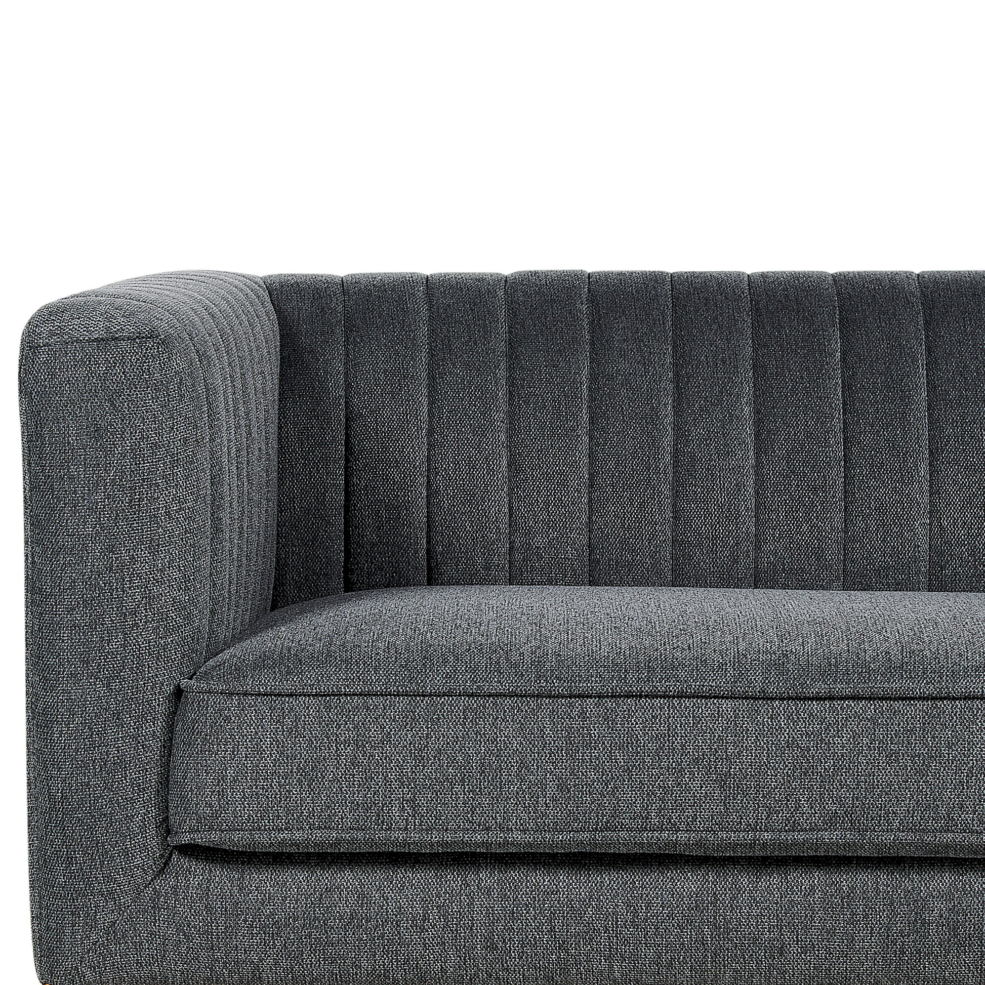Descrizione: Dieses sorgfältig gepolsterte Sofa wird schnell zu einem Ihrer Lieblingsplätze in Ihrem Zuhause, an dem Sie und Ihre Familie sich bestens entspannen können. Seine robuste Holzkonstruktion und seine hohen Holzbeine versprechen Ihnen Stabilität beim Sitzen. Das Sofa verfügt über einen Rundumbezug aus einem angenehm weichen Stoff, der in einem dunklen Farbton gehalten ist. Für besondere Raffinesse und einen perfekten Sitzkomfort sorgen seine tiefe Sitzfläche, die dicken Sitzkissen und breiten Armlehnen. Seine vertikal gesteppte Rückenlehne lässt den Dreisitzer garantiert in jeder Einrichtung auffallen. Material: Polyester. Zusätzliches Material: Gummibaumholz, Eukalyptus. Material Zusammensetzung: 100% Polyester Gewicht: 45 Kapazität: 3 Personen Montage: Beine / Füsse nicht montiert Holzart: Eucalyptus deglupta, Hevea brasiliensis Holzursprung: China Beine Höhe: 16 Polsterstärke: 15 Sitzhöhe: 44 Das Angebot beinhaltet: 1 x Dreisitzer Sitzfläche: 175x60 Höhe: 71 Breite: 205 Tiefe: 82 Art: 3 Sitzer Sofa Stil: Modern Allgemeine Farbe: Grau Schatten: Dunkelgrau Muster: Ohne Muster Hauptmaterial: Polyester Füllmaterial: Taschenfedern, Schaumstoff Arm Stil: Gerade