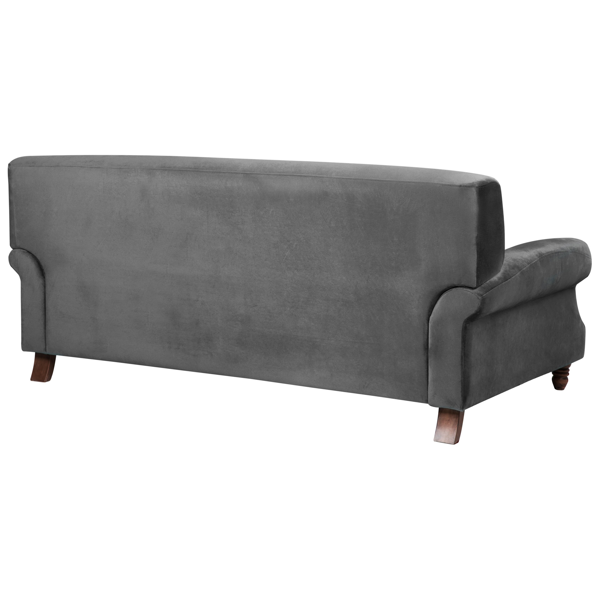 Dank der formschönen Konstruktion und dem weichen Bezug aus Samtstoff sticht der besondere Charakter des Sofas in den Vordergrund. Die breiten, abgerundeten Armlehnen und die hohe Rückenlehne liefern den besten Komfort und sind für gemütliche Stunden beim Fernseher wie geschaffen. Zusammen mit den Sitzkissen und zusätzlichen Dekokissen lässt das Modell eine sehr heimelige Stimmung im Raum aufkommen. Material: Samtstoff. Zusätzliches Material: Eukalyptus. Material Zusammensetzung: 100% Polyester Gewicht: 54 Kapazität: 2 Personen Montage: Beine / Füsse nicht montiert Holzart: Eucalypteae Holzursprung: China Kissen Abmessungen: 73x71x22 Beine Höhe: 11.5 Polsterstärke: 22 Sitzhöhe: 41 Das Angebot beinhaltet: 1 x Zweisitzer, 6 x Zierkissen Sitzfläche: 151x60 Höhe: 82 zusätzliche Information: Bitte beachten Sie, dass Samtstoff unter verschiedenen Lichtverhältnissen eine andere Optik haben kann – das Material schimmert bei Tageslicht stärker und wirkt bei künstlicher Beleuchtung in Innenräumen eher gedämpft. Aufgrund der glatten, hochdichten Struktur des Gewebes kann sein Farbton auch variieren, wenn man mit der Hand in verschiedene Richtungen und Winkel über den Stoff fährt. Um den Farbton auszugleichen und Druckstellen zu vermeiden, sollte der Webstoff sanft mit einer offenen Handfläche in eine Richtung gestrichen, mit einem feuchten Tuch abgewischt oder einem Dampfbügeleisen gebügelt werden. Breite: 186 Tiefe: 102 Art: 2 Sitzer Sofa Stil: Glamourös Allgemeine Farbe: Grau Muster: Ohne Muster Hauptmaterial: Samtstoff Füllmaterial: Schaumstoff Arm Stil: Abgerundet