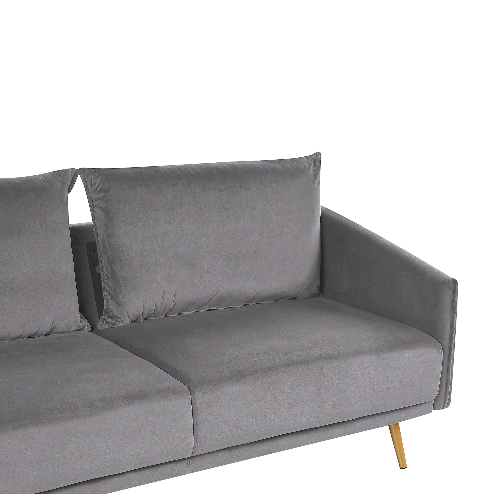 3-Sitzer Sofa Samtstoff grau mit goldenen Beinen MAURA