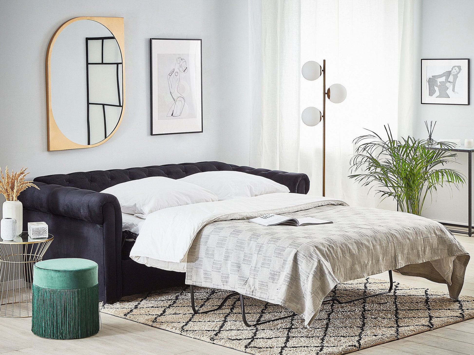 Schlafsofa 3-Sitzer Samtstoff schwarz CHESTERFIELD