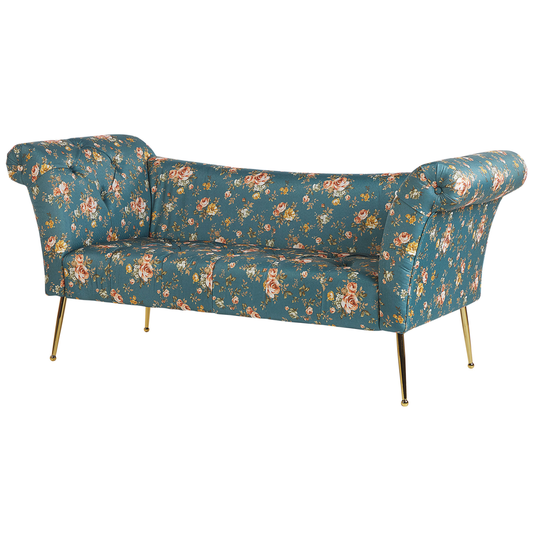 Chaiselongue Stoff seeblau / gold Blumenmuster NANTILLY