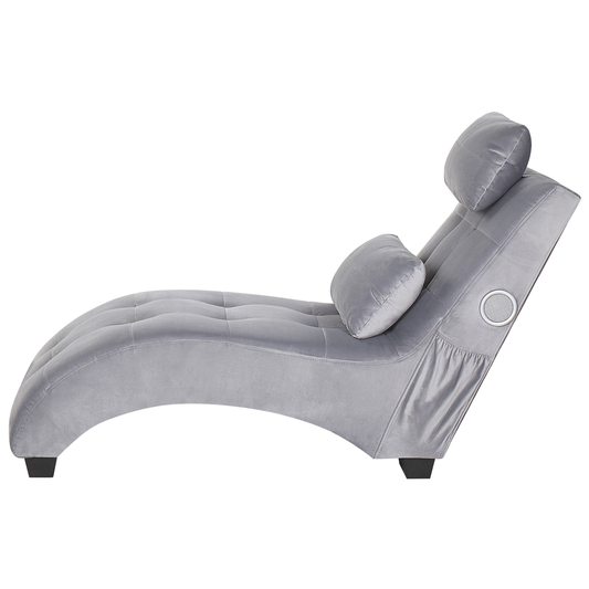 Chaiselongue Samtstoff mit Bluetooth Lautsprecher USB-Port hellgrau SIMORRE