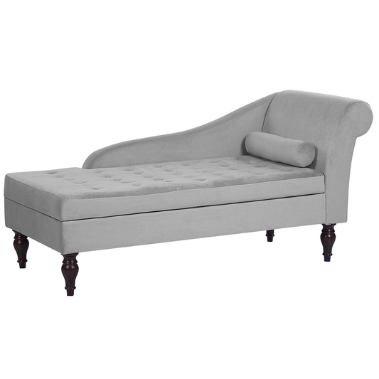 Chaiselongue Samtstoff hellgrau mit Bettkasten rechtsseitig PESSAC II