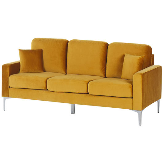 3-Sitzer Sofa Samtstoff senfgelb mit Kissen GAVLE