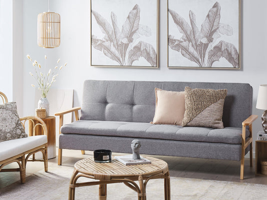3-Sitzer Schlafsofa Stoff grau / heller Holzfarbton TJORN