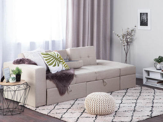 3-Sitzer Schlafsofa beige mit Stauraum Ottomane FALSTER