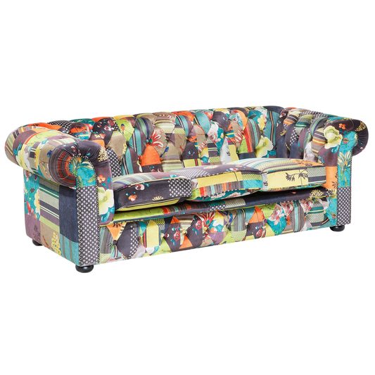 3-Sitzer Sofa grün / gelb Patchwork CHESTERFIELD