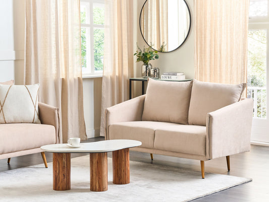 2-Sitzer Sofa Samtstoff beige mit goldenen Beinen MAURA