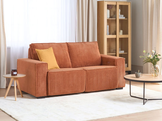 3-Sitzer Sofa Cord orange elektrisch verstellbar NUKARI