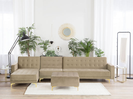 Ecksofa mit Ottomane ABERDEEN Sandbeige Samtstoff Linksseitig