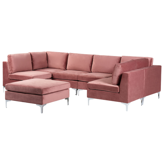 Wohnlandschaft U-förmig Samtstoff rosa mit Ottomane 6-Sitzer EVJA