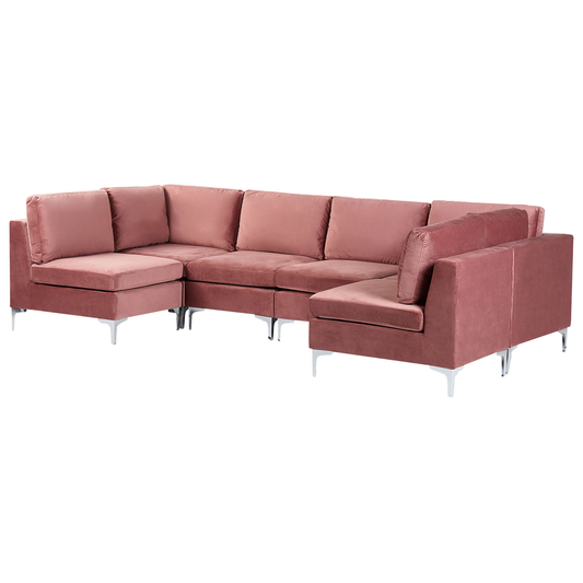 Wohnlandschaft U-förmig Samtstoff rosa 6-Sitzer EVJA