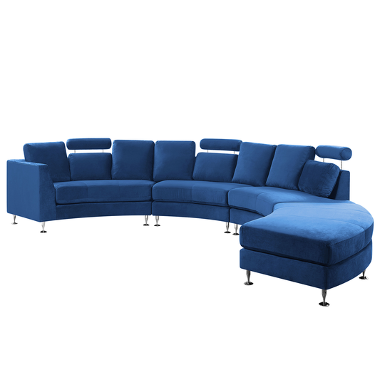 7-Sitzer Sofa Samtstoff dunkelblau halbrund mit Ottomane ROTUNDE