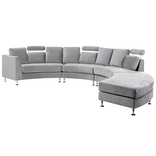 7-Sitzer Sofa Samtstoff hellgrau halbrund mit Ottomane ROTUNDE