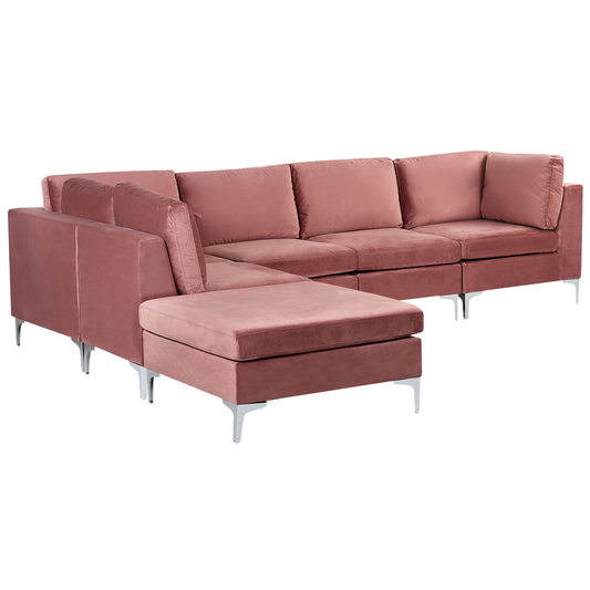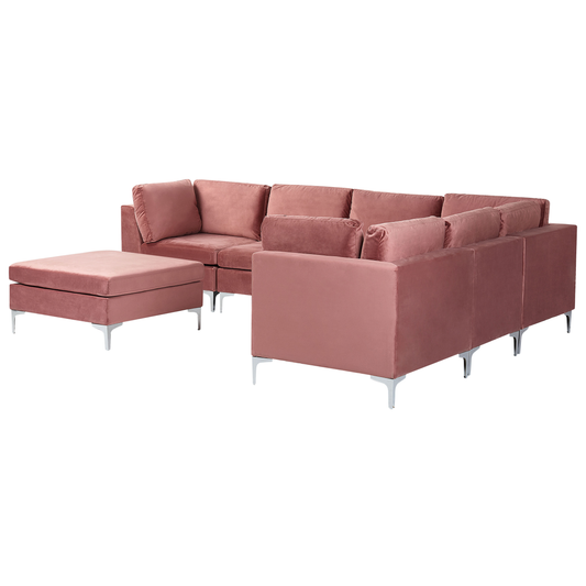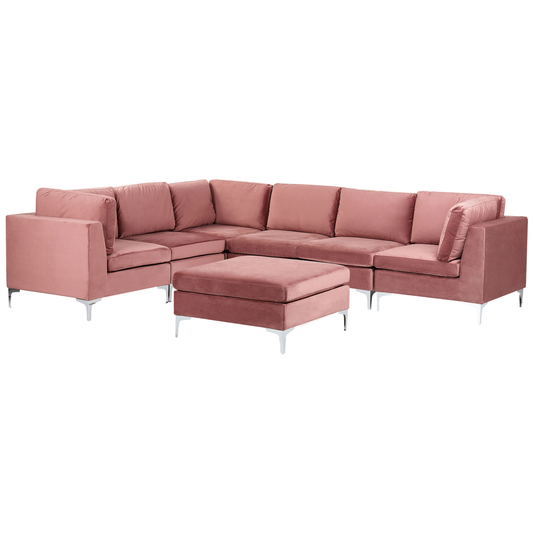 6-Sitzer Ecksofa Samtstoff rosa rechtsseitig mit Ottomane EVJA