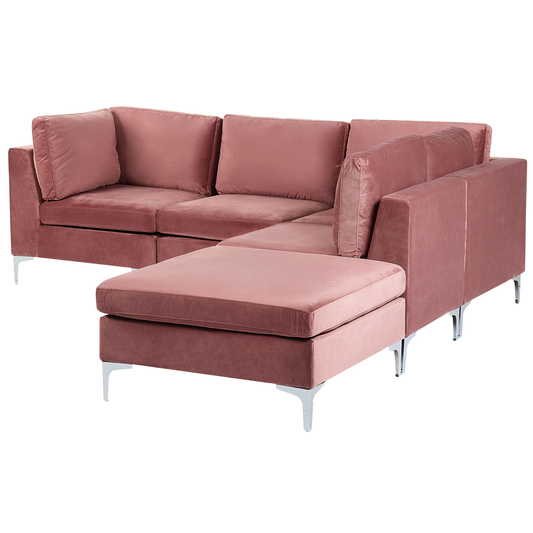 5-Sitzer Ecksofa Samtstoff rosa rechtsseitig mit Ottomane EVJA
