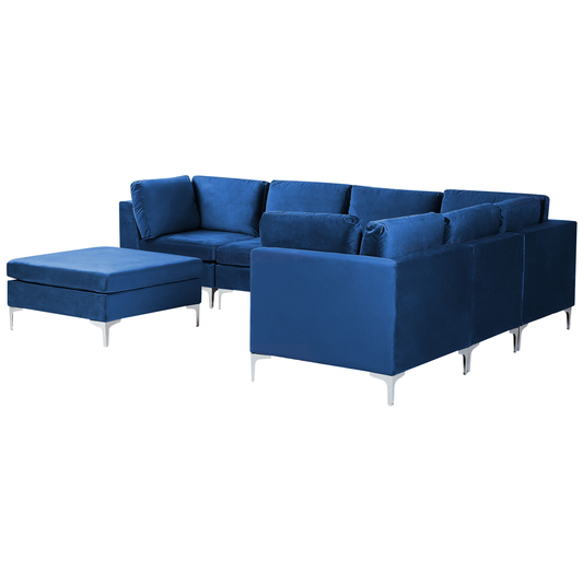 6-Sitzer Ecksofa Samtstoff marineblau linksseitig mit Ottomane EVJA