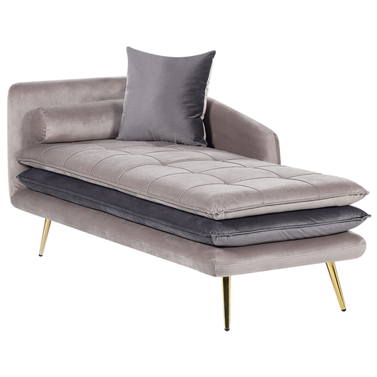 Chaiselongue Samtstoff taupe / dunkelgrau linksseitig GONESSE