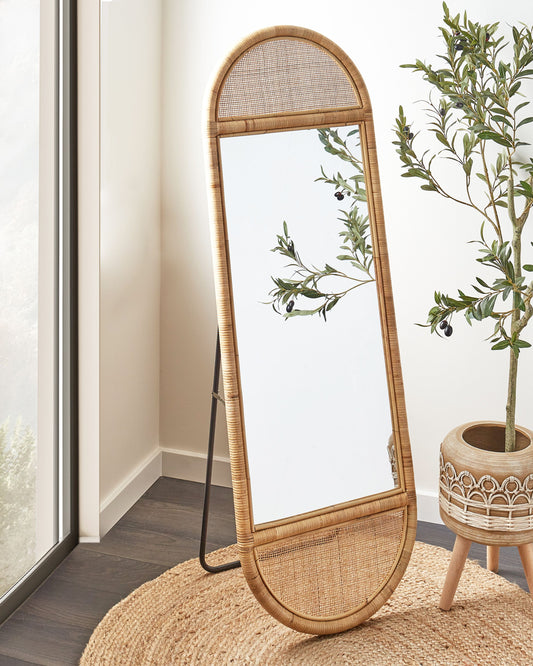 Standspiegel MALANGE 150 cm Rattan Naturfarben