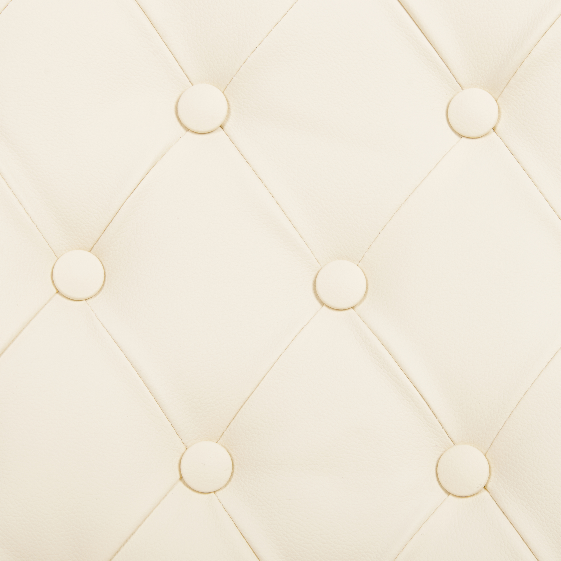 Dieser luxuriöse Bürosessel vereint moderne Eleganz mit einem zauberhaften Vintage-Touch. Sowohl seine Sitzfläche als auch seine Armlehnen sind mit strapazierfähigem Kunstleder überzogen. Das Modell zeichnet sich durch seine dekorative, hohe Rückenlehne aus, die mit einer edlen Knopfheftung und Diamantsteppung versehen ist. Die gepolsterten, geschwungenen Armlehnen bieten zusätzlichen Komfort und stimmen perfekt mit dem Sitzflächenfarbton überein. Zudem verfügt der Sessel über ein drehbares Fusskreuz, was Ihnen seine Handhabung wesentlich erleichtert. Die praktische Gasdruckfeder erlaubt es Ihnen die Sitzhöhe an Ihre Bedürflisse anzupassen und den Stuhl sowohl im Heimbüro als auch im Kinderzimmer einzusetzen. Material: Kunstleder. Zusätzliches Material: Eisen, Sperrholz, Kunststoff. Material Zusammensetzung: 100% Kunstleder Gewicht: 12 Montage: Nicht montiert Gewichtskapazität: 120 Sitzhöhe: 46-56 Das Angebot beinhaltet: 1 x Bürostuhl Sitzfläche: 49x46 Höhe: 98-108 zusätzliche Information: Um sicherzustellen, dass die Konstruktion stabil und die Nutzungssicherheit gewährleistet ist, sollte man 2 Wochen nach dem Zusammenbau überprüfen, ob die Ware auch korrekt montiert wurde. Ausserdem ist alle 3 Monate zu prüfen, ob die Schrauben richtig festgezogen sind. Breite: 60 Tiefe: 60 Art: Bürostuhl Stil: Glamourös Allgemeine Farbe: Beige Hauptmaterial: Kunstleder