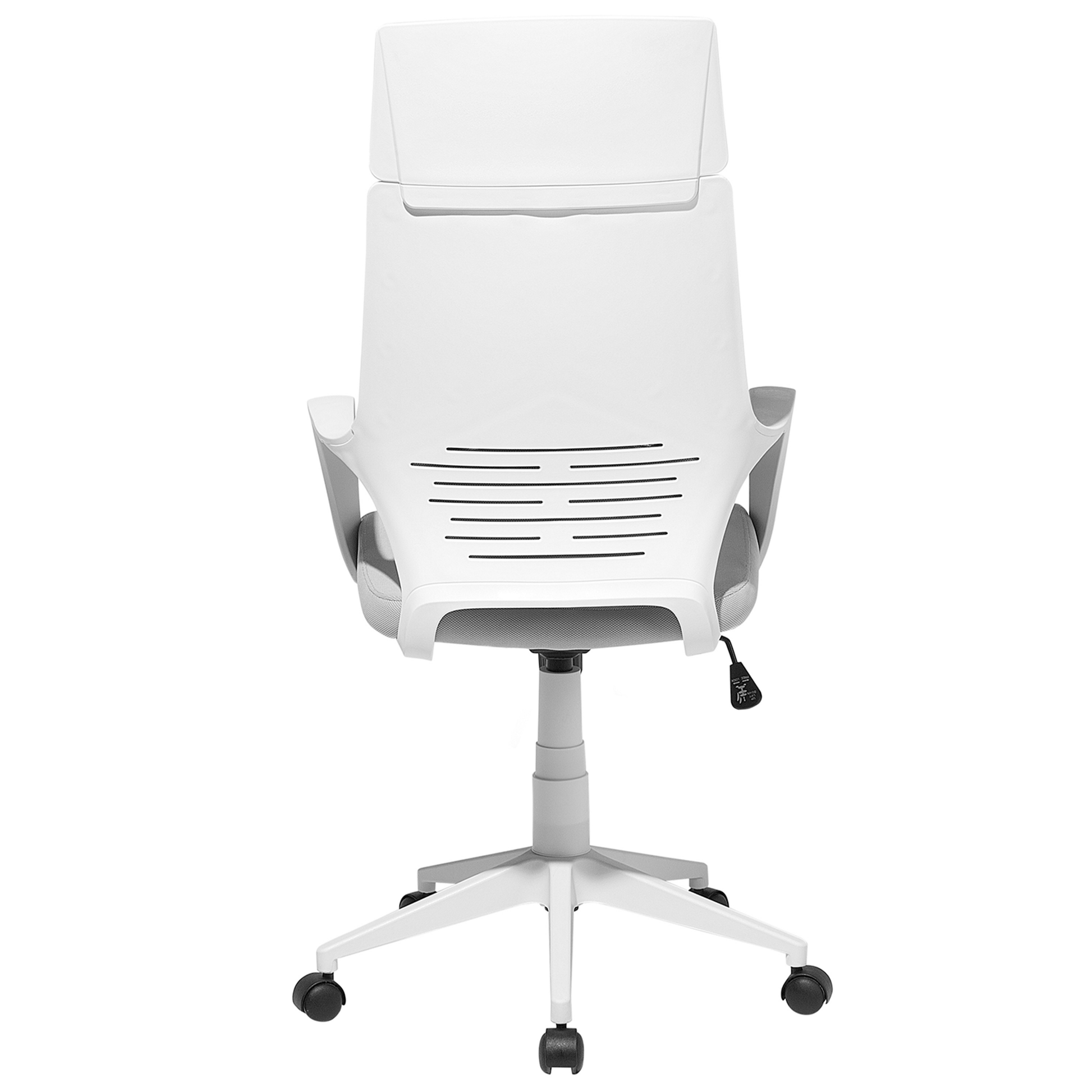Der Chefsessel begeistert mit moderner, sportlicher Ausstrahlung und praktischer Funktionalität. Die Wippmechanik für entspanntes Zurücklehnen, die stufenlos höhenverstellbare Sitzhöhe und das um 360 Grad drehbare Fusskreuz sorgen dafür, dass Sie auch bei langem Arbeiten am Schreibtisch immer noch bequem sitzen. Die angenehm gepolsterte Sitzfläche bieten besonders viel Sitzkomfort. Die hohe Rückenlehne verfügt über eine integrierte Kopfstütze. Bei der Farbgestaltung wurde das weisse Gestell aus Kunststoff mit einem strapazierfähigen, grauen Bezug kombiniert. Material: Polyester. Zusätzliches Material: Kunststoff, Nylon. Material Zusammensetzung: 100% Polyester Gewicht: 13 Montage: Nicht montiert Gewichtskapazität: 120 Sitzhöhe: 42-52 Das Angebot beinhaltet: 1 x Bürostuhl Sitzfläche: 52x48 Höhe: 116-126 zusätzliche Information: Um sicherzustellen, dass die Konstruktion stabil und die Nutzungssicherheit gewährleistet ist, sollte man 2 Wochen nach dem Zusammenbau überprüfen, ob die Ware auch korrekt montiert wurde. Ausserdem ist alle 3 Monate zu prüfen, ob die Schrauben richtig festgezogen sind. Breite: 64 Tiefe: 64 Art: Bürostuhl Stil: Minimalistisch Allgemeine Farbe: Grau Schatten: Hellgrau Hauptmaterial: Polyester