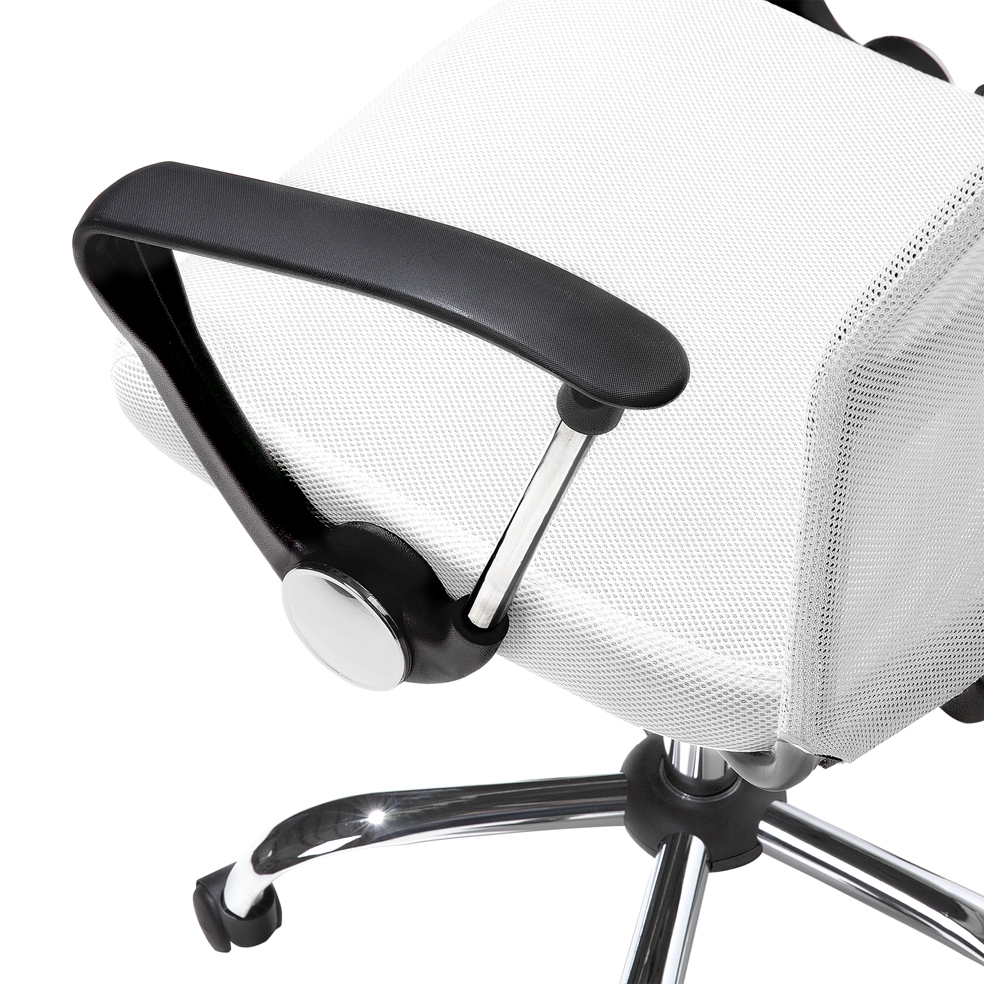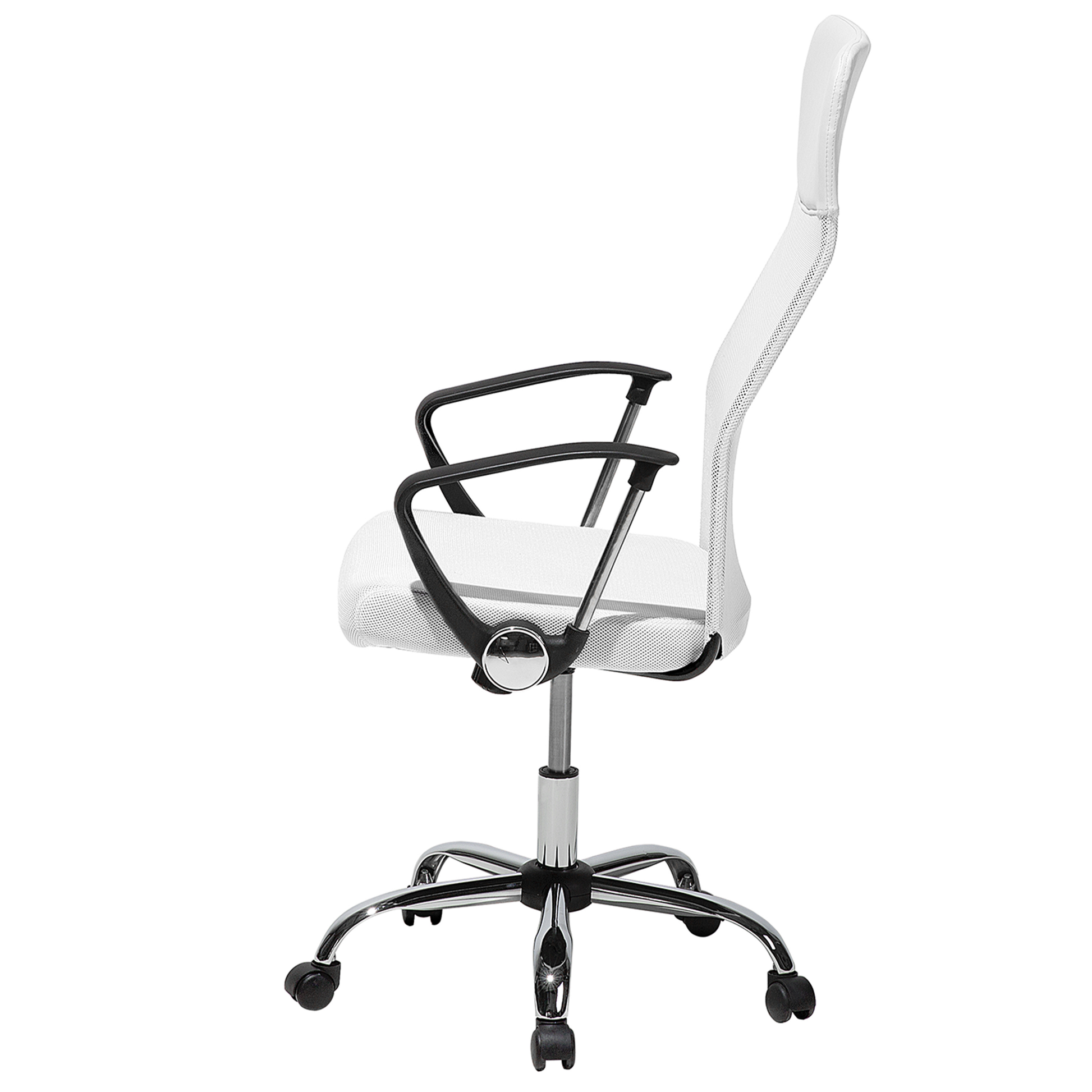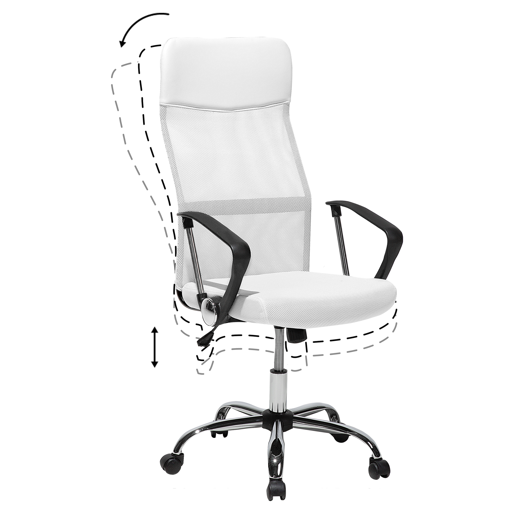 Dieser Bürostuhl im ergonomischen Design bietet Unterstützung für Ihren Körper während langer Arbeitsstunden. Die verstellbare Sitzhöhe, die 360°-Drehung und ein Kippmechanismus ermöglichen es Ihnen, den Sitz an Ihren Komfort anzupassen. Die verchromte Metallbasis verfügt über 5 leichtgängige Rollen. Der dick gepolsterte Sitz ist mit einem durchlässigen Netzstoff bezogen, während der Kopfstütze hochwertiges Kunstleder verwendet wird. Material: Netz. Zusätzliches Material: Kunststoff, Kunstleder, Eisen. Gewicht: 10 Montage: Nicht montiert Gewichtskapazität: 120 Sitzhöhe: 37-47 Das Angebot beinhaltet: 1 x Bürostuhl Sitzfläche: 49x50 Höhe: 109-119 zusätzliche Information: Um sicherzustellen, dass die Konstruktion stabil und die Nutzungssicherheit gewährleistet ist, sollte man 2 Wochen nach dem Zusammenbau überprüfen, ob die Ware auch korrekt montiert wurde. Ausserdem ist alle 3 Monate zu prüfen, ob die Schrauben richtig festgezogen sind. Breite: 63 Tiefe: 63 Art: Bürostuhl Stil: Minimalistisch Allgemeine Farbe: Weiss Hauptmaterial: Netz