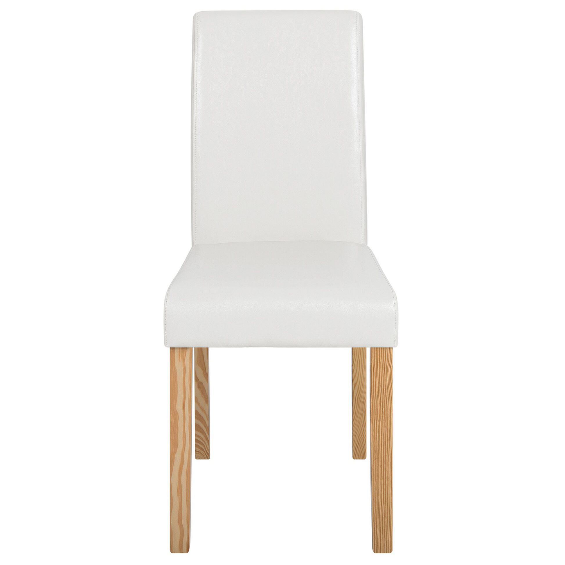 Dank der schönen Farbe strahlt unser Esszimmerstuhl-Set sofort eine behagliche Gemütlichkeit aus. Diese Esszimmerstühle verfügen über hohe Rückenlehnen, die einen hohen Sitzkomfort bieten. Ihre Polsterung ist aus hochwertigem weißem Kunstleder gefertigt, und die hellen Beine aus lenglebigem Gummibaumholz verleihen dem Set einen Retro-Touch. Diese Stühle eignen sich sowohl für eine klassische als auch eine moderne Einrichtung. Material: Kunstleder. Zusätzliches Material: Gummibaumholz, Sperrholz. Material Zusammensetzung: 30% Polyester, 70% Kunstleder (PU) Gewicht: 6 Montage: Teilweise montiert Holzart: Hevea brasiliensis Holzursprung: China Gewichtskapazität: 115 Polsterstärke: 10 Sitzhöhe: 48 Das Angebot beinhaltet: 2 x Stühle Sitzfläche: 41x43 Höhe: 95 zusätzliche Information: Um sicherzustellen, dass die Konstruktion stabil und die Nutzungssicherheit gewährleistet ist, sollte man 2 Wochen nach dem Zusammenbau überprüfen, ob die Ware auch korrekt montiert wurde. Ausserdem ist alle 3 Monate zu prüfen, ob die Schrauben richtig festgezogen sind. Breite: 43 Tiefe: 61 Art: Esszimmerstuhl 2er Set Stil: Klassisch Allgemeine Farbe: Weiss Hauptmaterial: Kunstleder