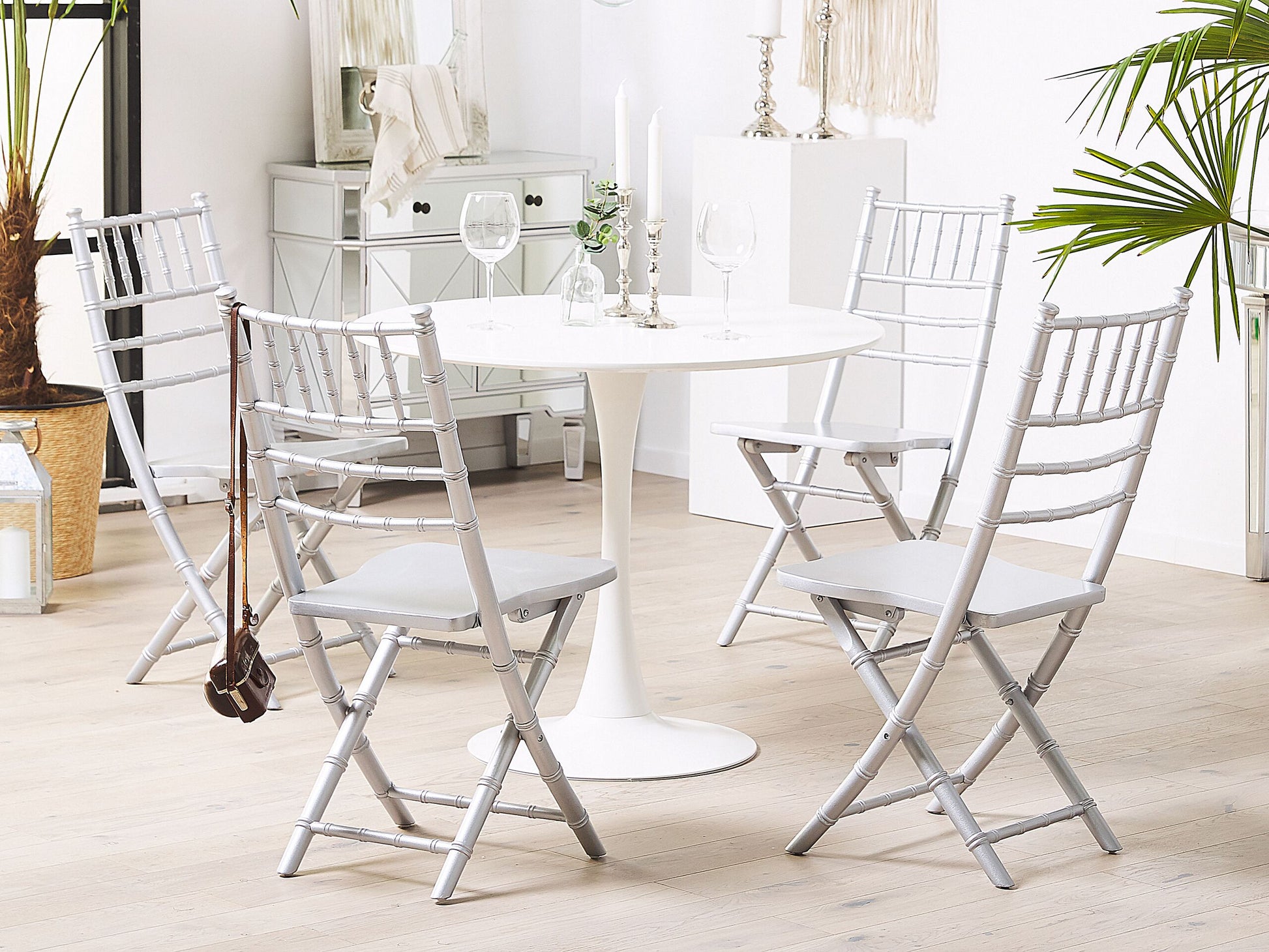 Descrizione: Lieben Sie eine Kombination aus Modernität und klassischer Eleganz? Diese attraktiven Stühle sind eine funktionale Sitzlösung für alle Wohnbereiche. Klappstühle wie diese eignen sich perfekt für kleine Räume, da sie als zusätzliche Sitzgelegenheiten für weitere Gäste genutzt werden können, gleichzeitig aber kaum Platz wegnehmen, wenn sie zusammengeklappt sind. Sie sind aus hochwertigen Buchenholz gefertigt und zeichnen sich durch ihre klassische Form aus, erhalten aber durch ihr Metalloptik eine moderne Ausstrahlung. Das Set kann für besondere Anlässe oder als Bestandteil der Alltagseinrichtung verwendet werden. Material: Buchenholz. Zusätzliches Material: Sperrholz. Gewicht: 4 Montage: Benötigt keine Montage Holzart: Fagus Sylvatica Holzursprung: China Gewichtskapazität: 150 Sitzhöhe: 44 Das Angebot beinhaltet: 4 x Stühle Sitzfläche: 39x40 Höhe: 85 zusätzliche Information: Bitte beachten Sie, dass die Querstangen lediglich einen Dekorationszweck erfüllen und nicht als Fussstützen geeignet sind. Breite: 39 Tiefe: 40 Art: Esszimmerstuhl 4er Set Stil: Boho Allgemeine Farbe: Silber Hauptmaterial: Buchenholz