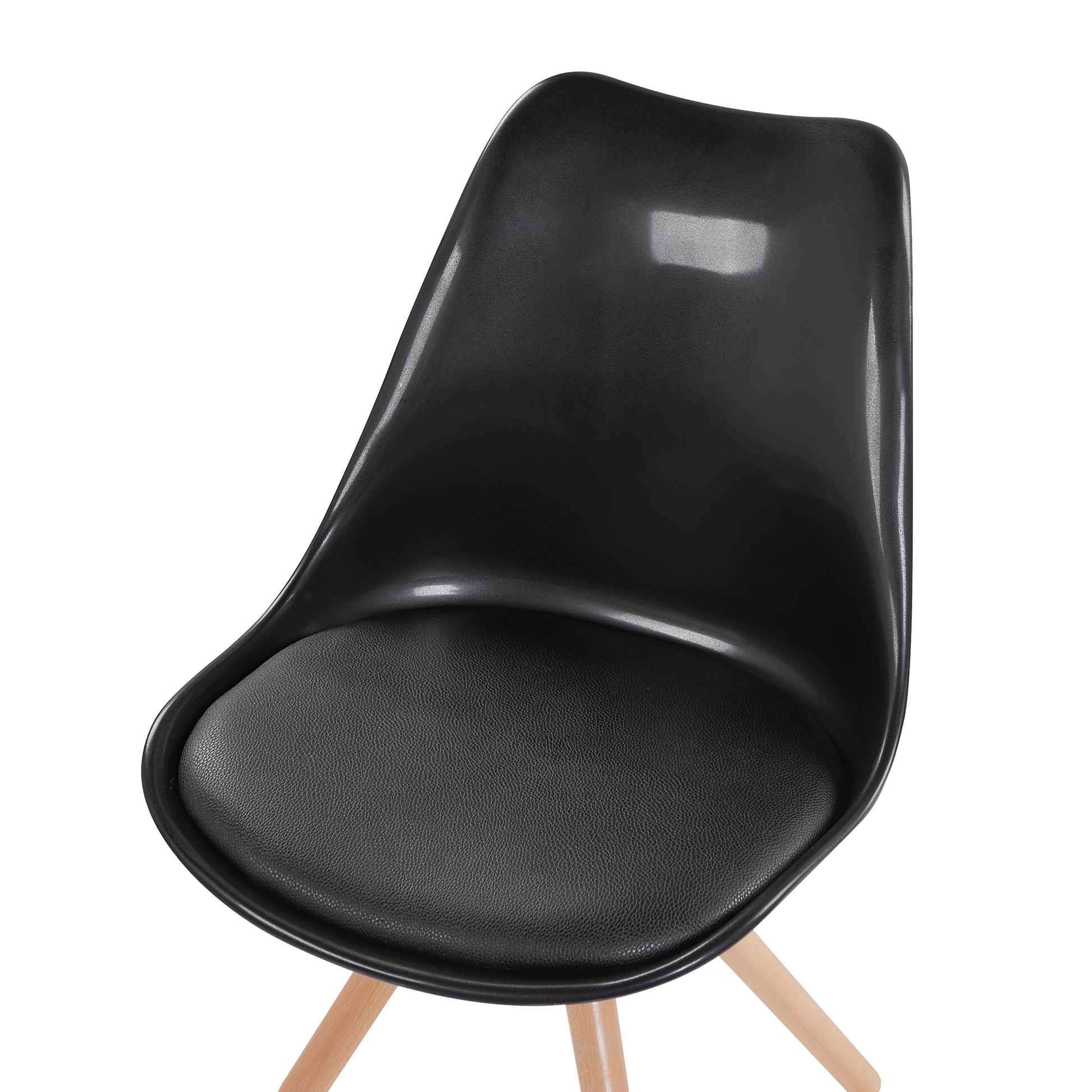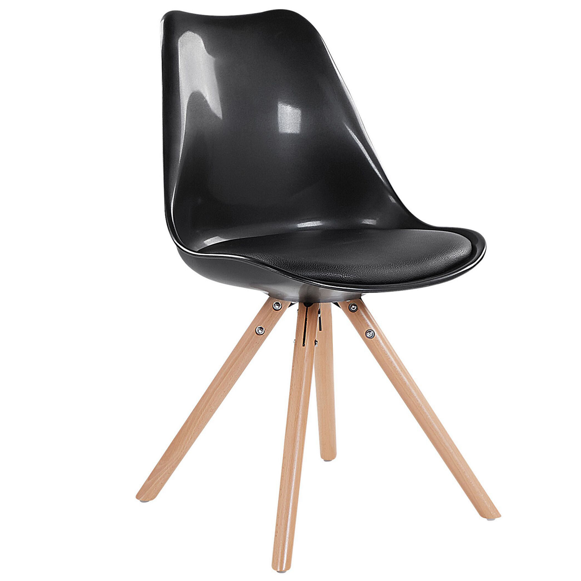 Die formstabile Kunststoff-Schale der Küchenstühle bezaubert mit ihrer wellenartigen Formgebung, einer besonders pflegeleichten Handhabung sowie Unempfindlichkeit gegenüber Verschmutzungen. Die üppige Schaumstoffpolsterung und der angenehm weiche Kunstlederbezug bringen hervorragende Sitzeigenschaften an jeden Ess-, Küchen- oder Wohnzimmertisch. Dank ihrer individuellen Maserung verleihen die 4 standsicheren Holzbeine jedem Modell einen eigenen Charakter. Die zusätzlichen Schutzkappen an den Füssen minimieren Kratzer auf Parkett- oder Holzböden. So lassen sich die Stühle auch geräuschlos und sorglos an jeden Ort verschieben. Material: Kunststoff. Zusätzliches Material: Kunstleder, Buchenholz. Material Zusammensetzung: 100% Kunstleder Gewicht: 6 Montage: Teilweise montiert Holzart: Fagus Sylvatica Holzursprung: Deutschland Gewichtskapazität: 125 Sitzhöhe: 46 Das Angebot beinhaltet: 2 x Stühle Sitzfläche: 42x42 Höhe: 86 zusätzliche Information: Um sicherzustellen, dass die Konstruktion stabil und die Nutzungssicherheit gewährleistet ist, sollte man 2 Wochen nach dem Zusammenbau überprüfen, ob die Ware auch korrekt montiert wurde. Ausserdem ist alle 3 Monate zu prüfen, ob die Schrauben richtig festgezogen sind. Breite: 49 Tiefe: 45 Art: Esszimmerstuhl 2er Set Stil: Modern Allgemeine Farbe: Schwarz Hauptmaterial: Kunststoff
