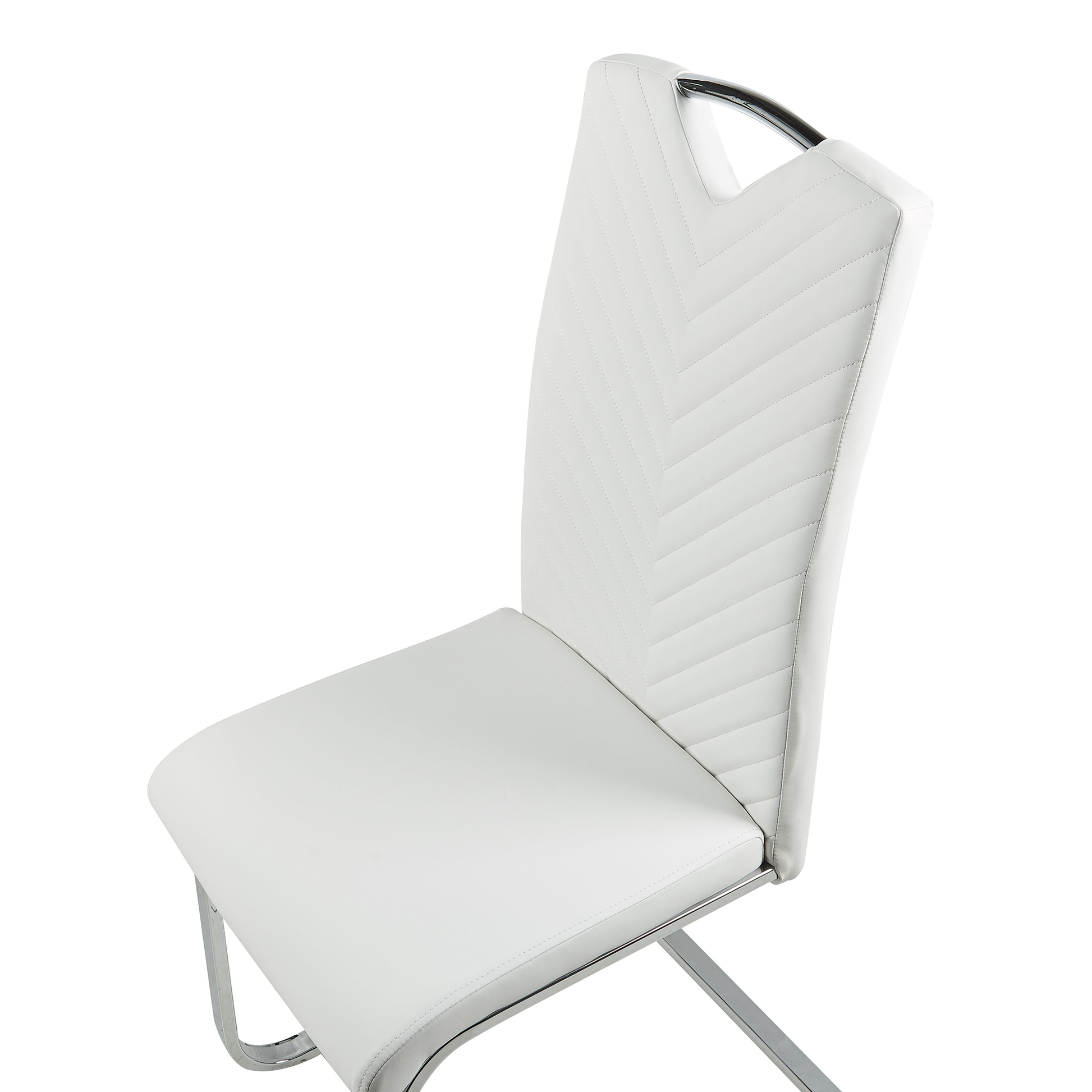 Suchen Sie nach Stühlen, die gleichzeitig stilvoll, bequem und leicht umzustellen sind? Wenn ja, dann ist dieses 2er Set perfekt für Sie. Dank dem eleganten Griff können Sie das Möbelstück mit Leichtigkeit verschieben und umstellen. Das chromfarbene Gestell verleiht dem Stuhl einen schimmernden und glänzenden Effekt, der durch die cremeweisse Sitzfläche aus Kunstleder mit einem dekorativen Fischgrätenmuster edel hervorgehoben wird. Dank der leicht schwingenden Form kann die Sitzmöglichkeit sowohl in kommerziellen als auch privaten Räumen perfekt untergebracht werden. Material: Kunstleder. Zusätzliches Material: Metall. Material Zusammensetzung: 100% Kunstleder Gewicht: 8 Montage: Teilweise montiert Gewichtskapazität: 150 Polsterstärke: 4 Sitzhöhe: 45 Das Angebot beinhaltet: 2 x Stühle Sitzfläche: 43x43 Höhe: 105 zusätzliche Information: Um sicherzustellen, dass die Konstruktion stabil und die Nutzungssicherheit gewährleistet ist, sollte man 2 Wochen nach dem Zusammenbau überprüfen, ob die Ware auch korrekt montiert wurde. Ausserdem ist alle 3 Monate zu prüfen, ob die Schrauben richtig festgezogen sind. Breite: 43 Tiefe: 55 Art: Esszimmerstuhl 2er Set Stil: Modern Allgemeine Farbe: Weiss Schatten: Cremeweiss Hauptmaterial: Kunstleder