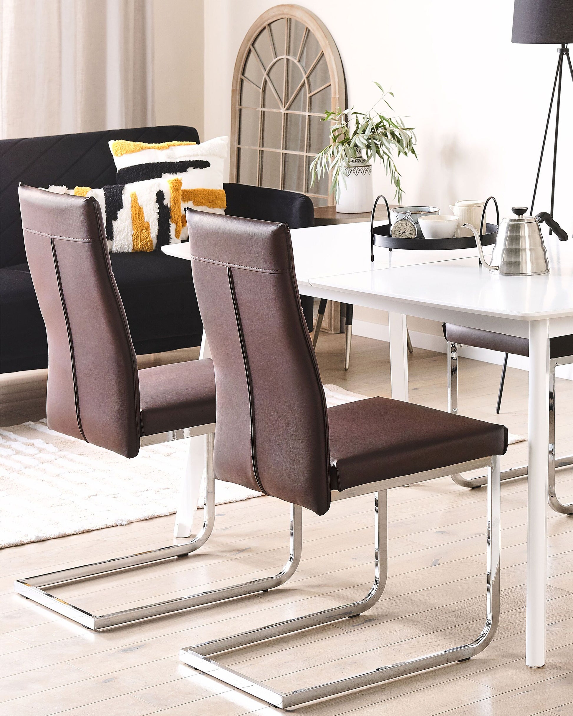 2er Set Kunstleder Freischwinger Stuhl Dunkelbraun ROCKFORD