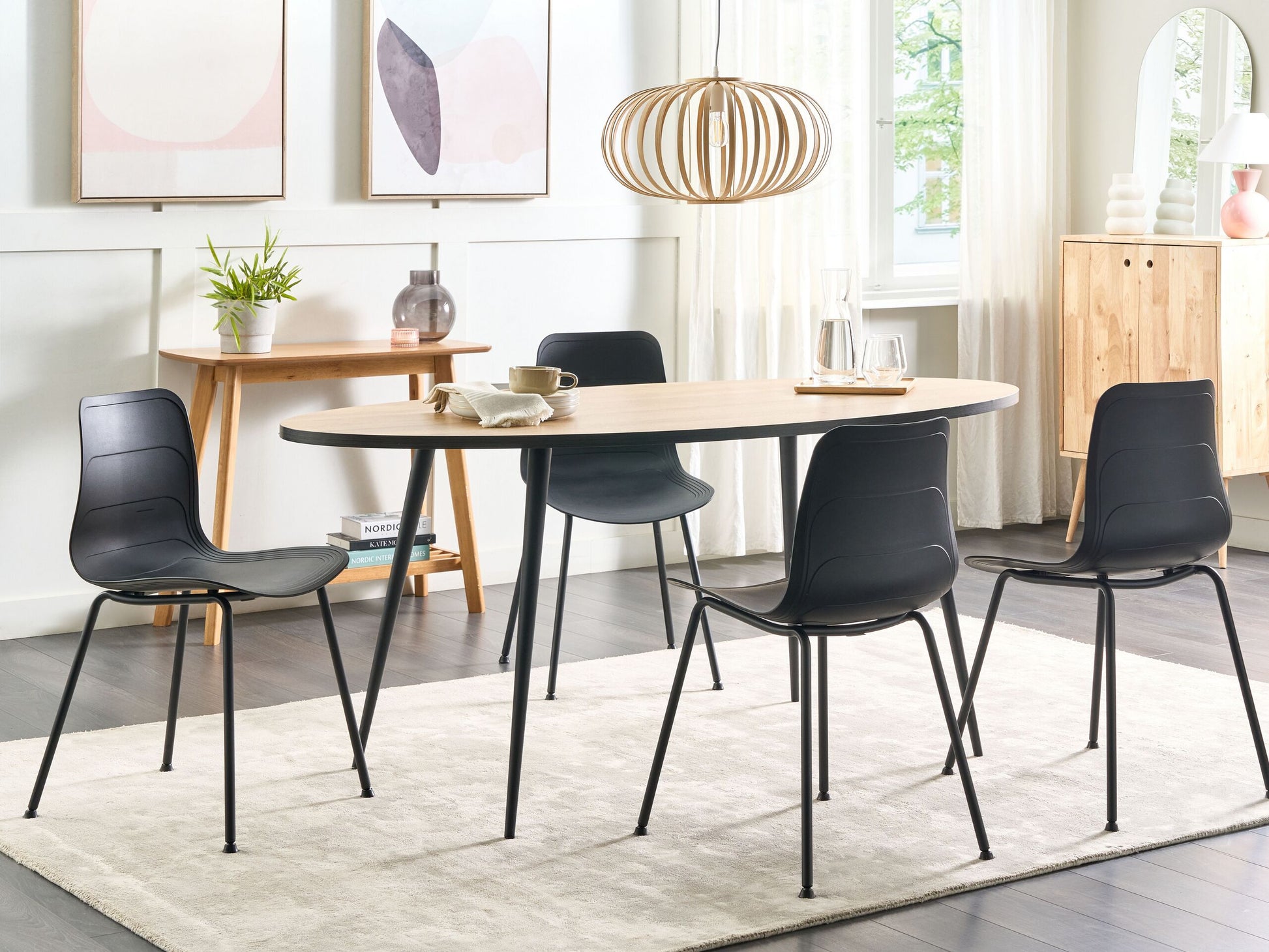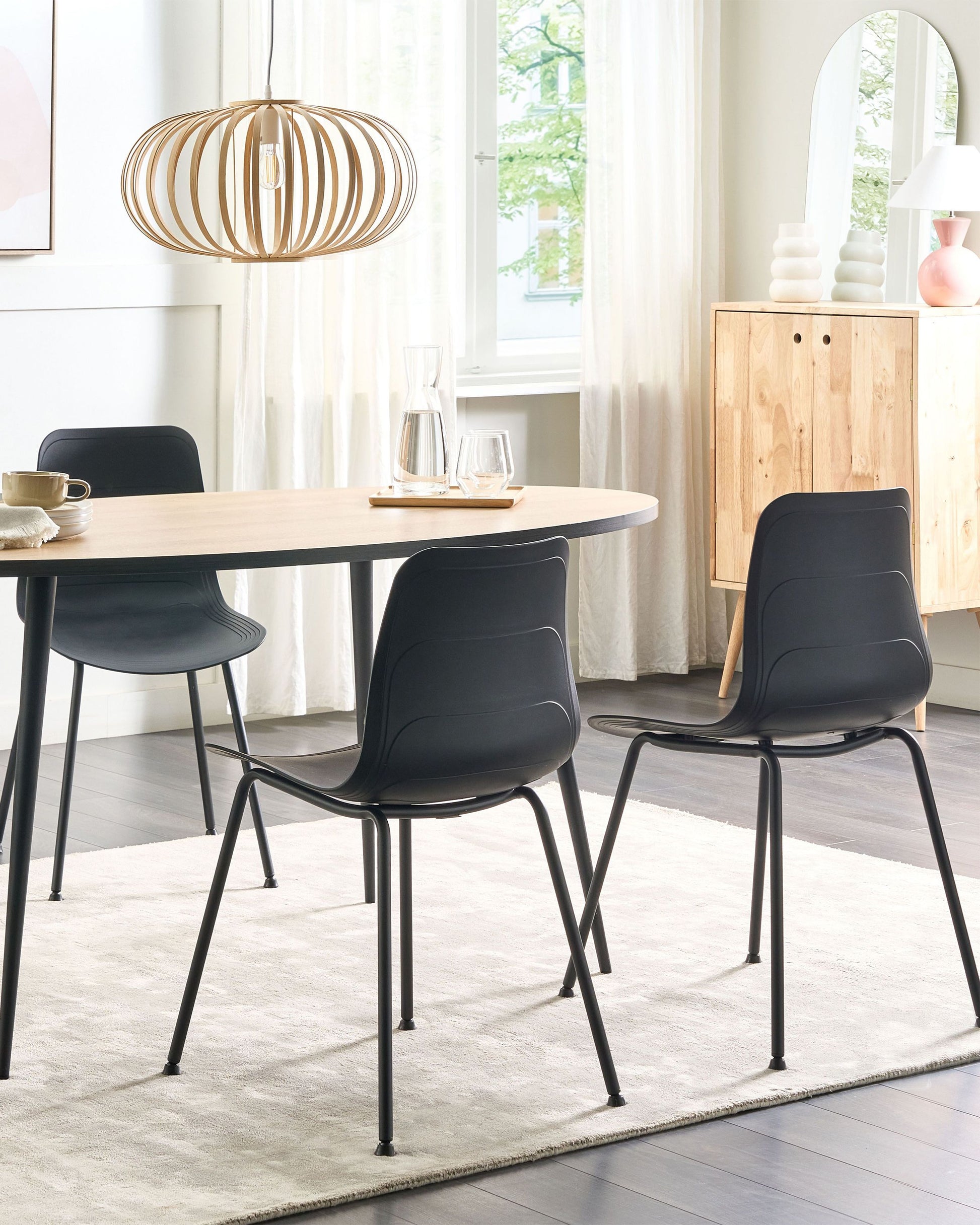 Setzen Sie auf die haltbaren und langlebigen Materialien sowie den unvergleichlichen Look dieses 2er-Sets. Die formschönen Kunststoff-Sitzschalen sorgen für angemessenen Komfort, während das Metallgestell hervorragenden Stand verspricht. Die zusätzlichen Schutzkappen sowie die korrosionsresistente Pulverbeschichtung der Beine machen die Stühle für jeden Einsatz bereit. Ob im Essbereich, Flur oder Wohnbereich – Kombinieren Sie die Stühle mit dem passenden Tisch und geniessen Sie Ihre Mahlzeiten mit Stil. Material: Polypropylen. Zusätzliches Material: Eisen. Gewicht: 5 Montage: Beine / Füsse nicht montiert Gewichtskapazität: 150 Sitzhöhe: 44 Das Angebot beinhaltet: 2 x Stühle Sitzfläche: 44x38 Höhe: 80 zusätzliche Information: Um sicherzustellen, dass die Konstruktion stabil und die Nutzungssicherheit gewährleistet ist, sollte man 2 Wochen nach dem Zusammenbau überprüfen, ob die Ware auch korrekt montiert wurde. Ausserdem ist alle 3 Monate zu prüfen, ob die Schrauben richtig festgezogen sind. Breite: 47 Tiefe: 52 Art: Esszimmerstuhl 2er Set Stil: Skandinavisch Allgemeine Farbe: Schwarz Hauptmaterial: Polypropylen