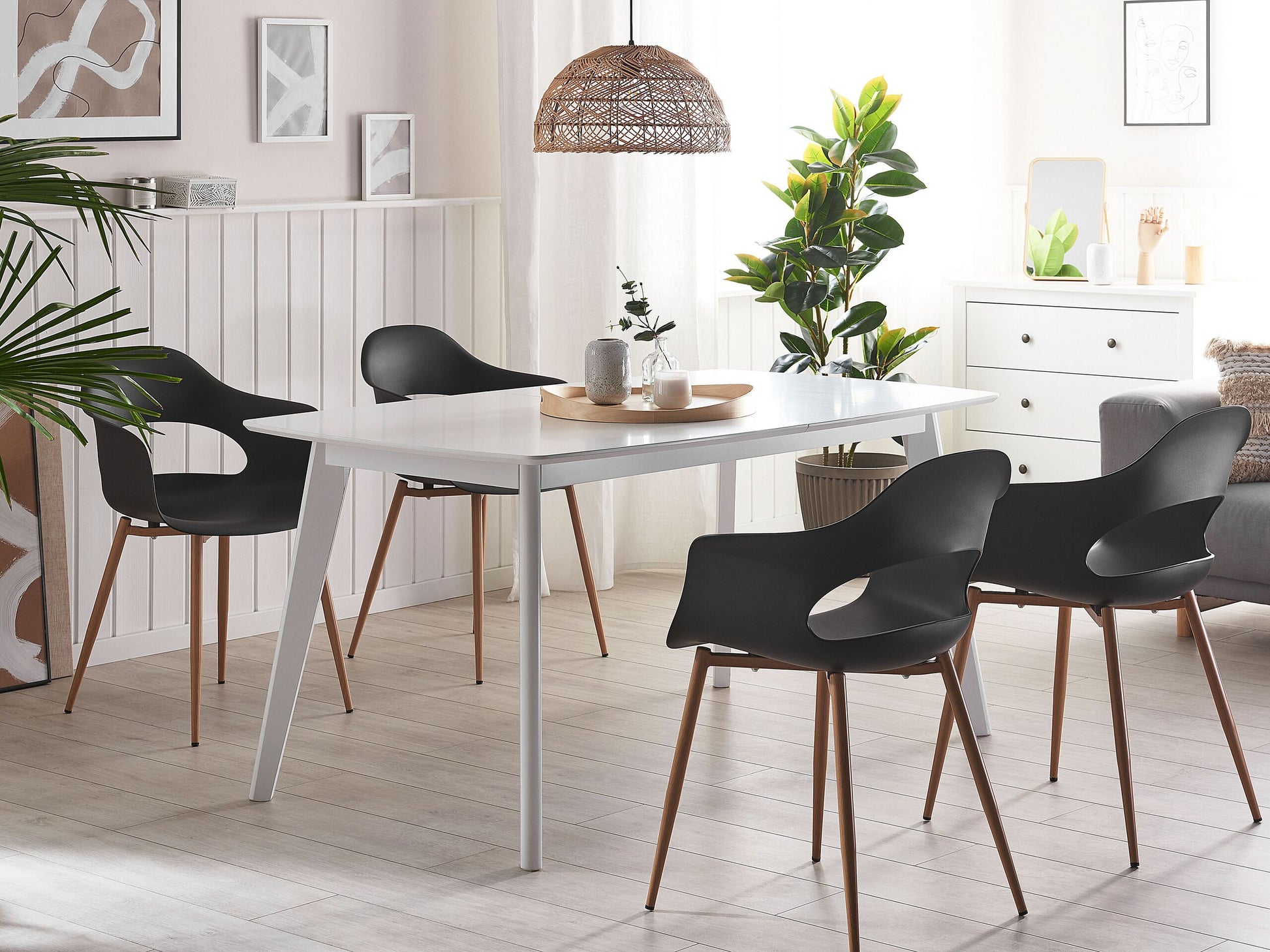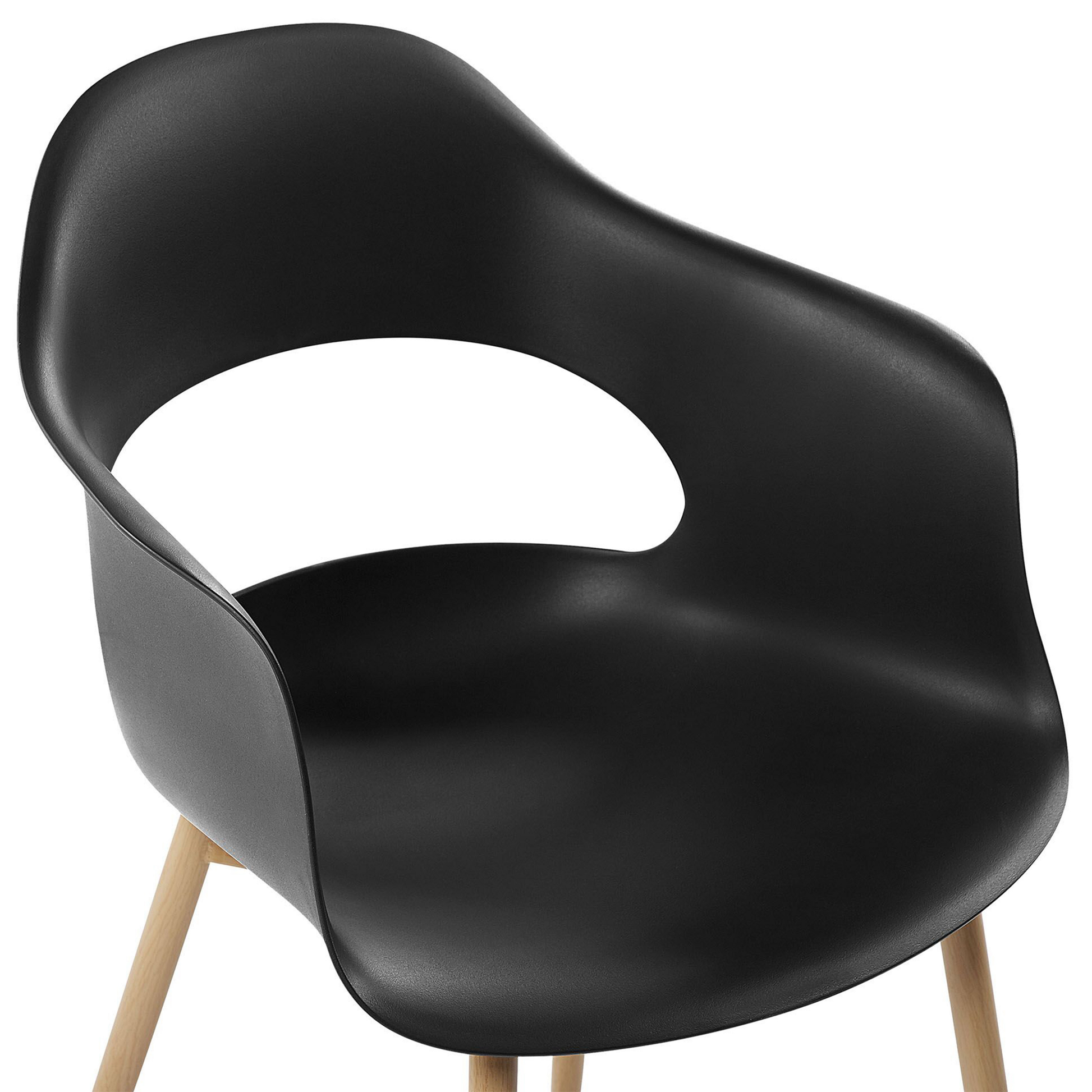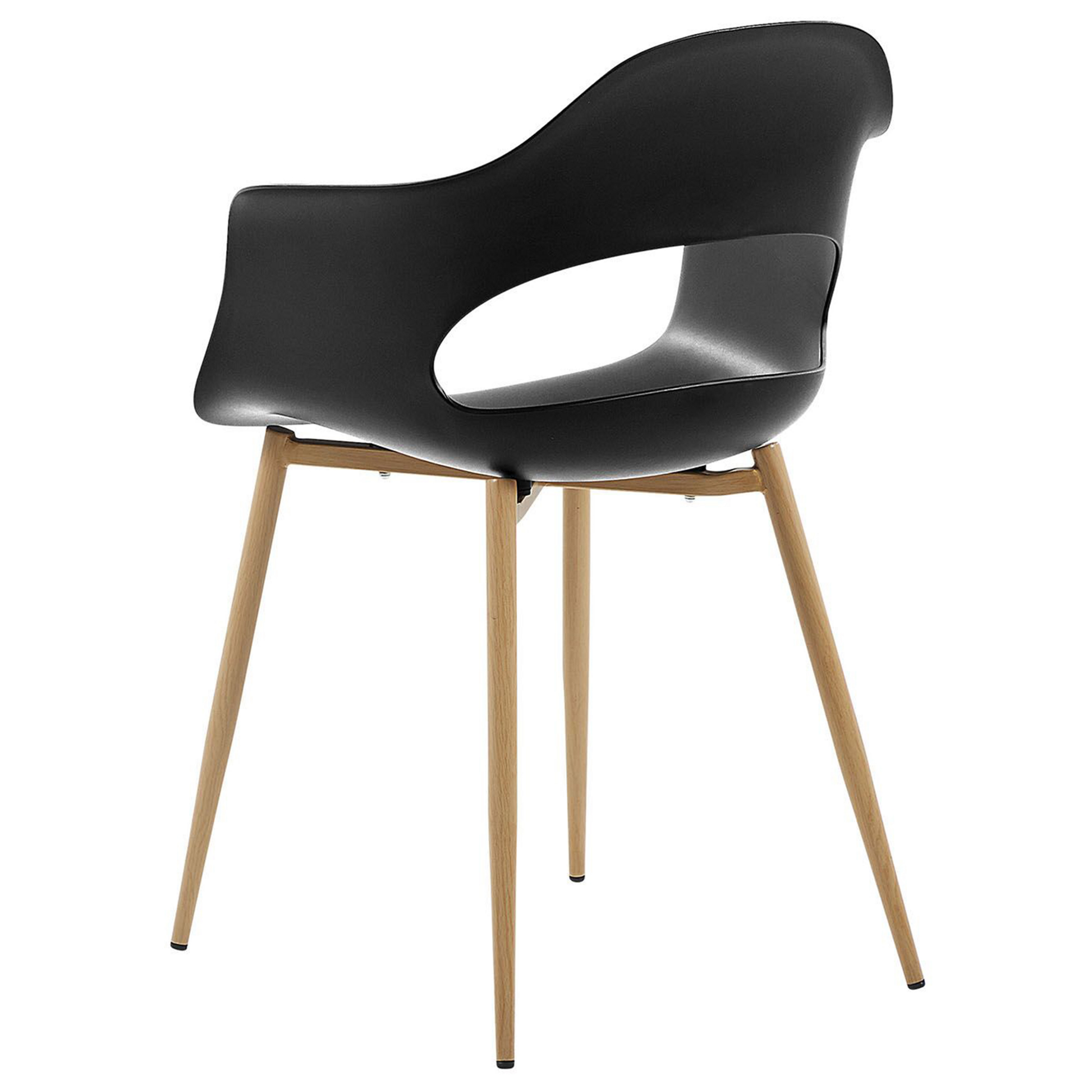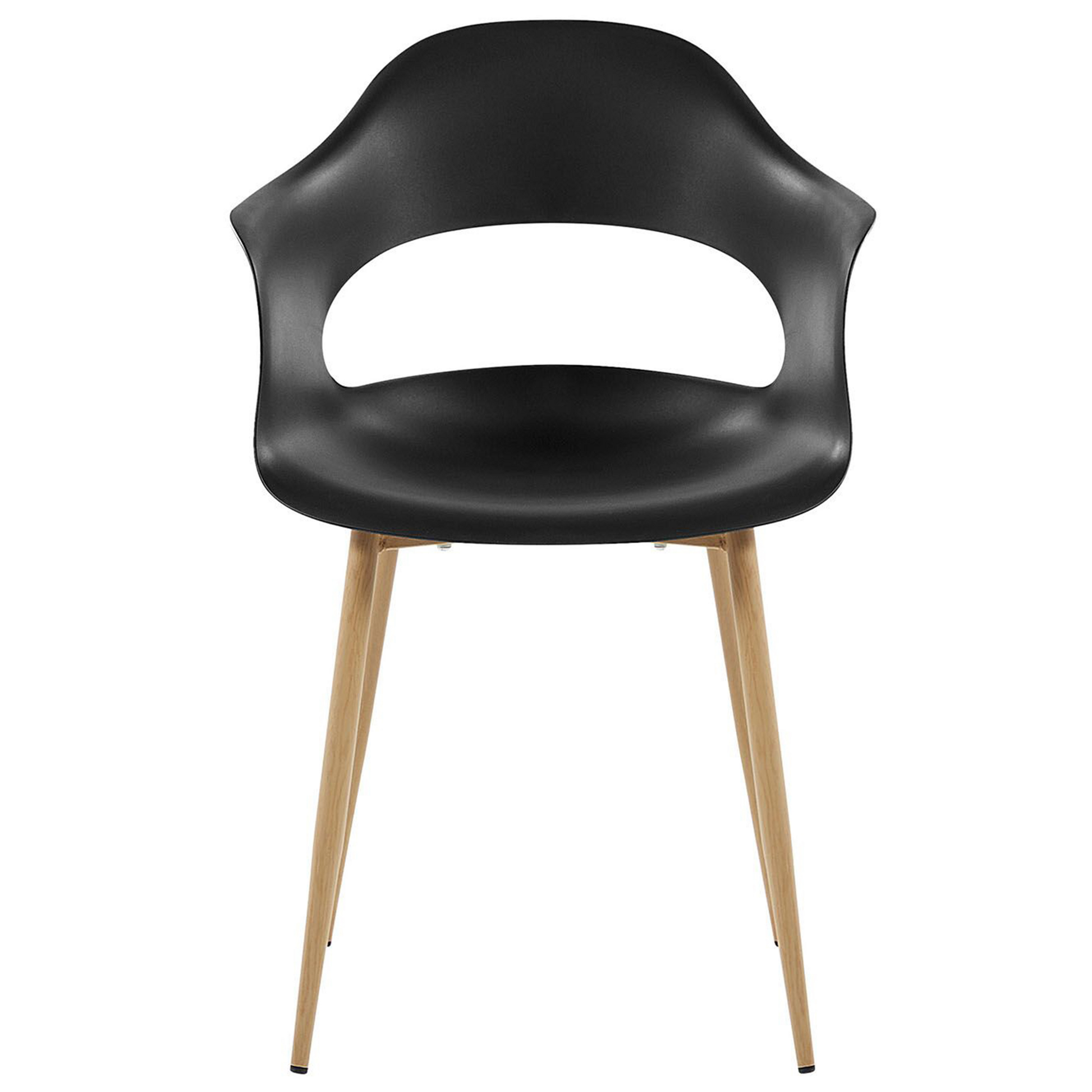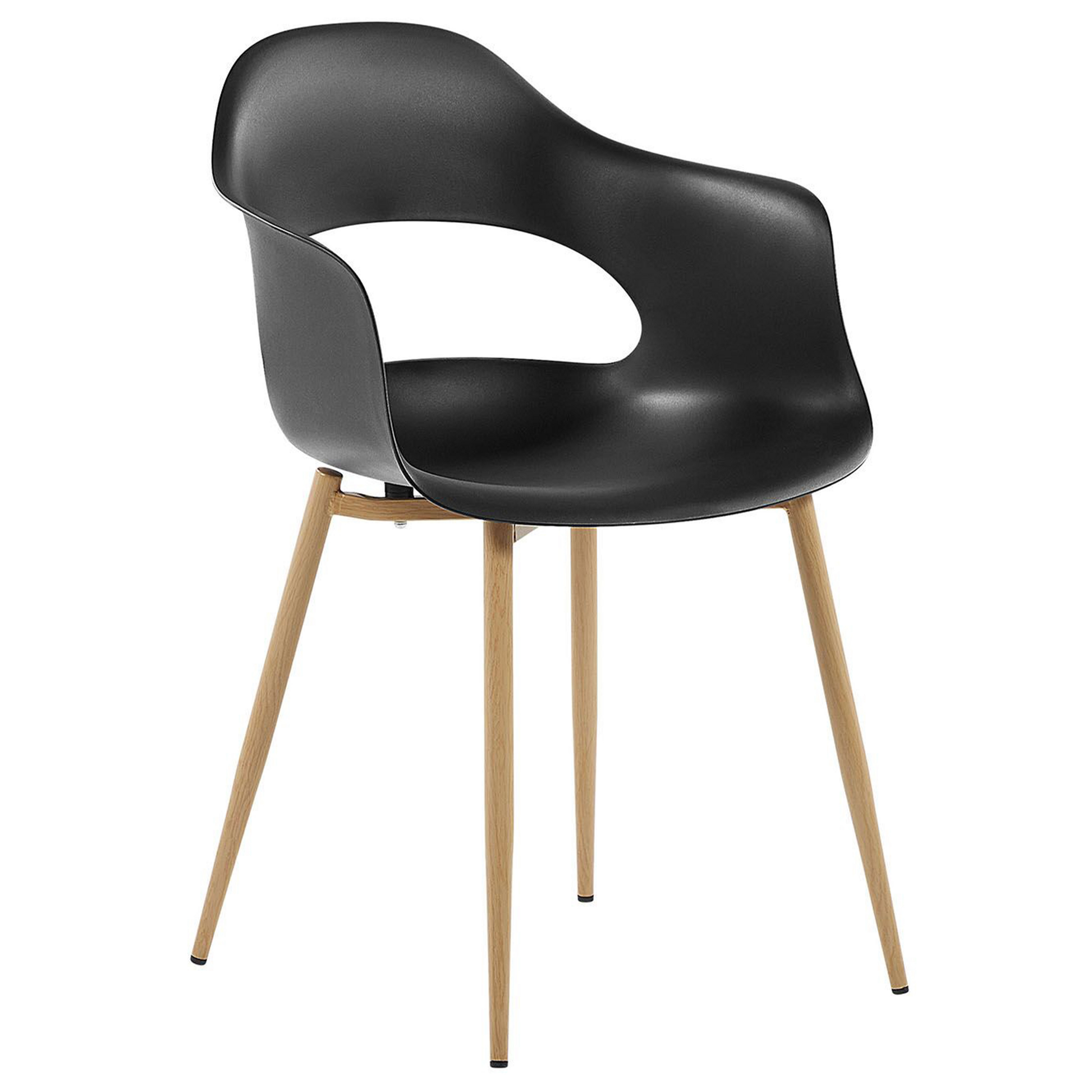 Ob als moderne Küchenstühle oder als funktionale Begleiter für Arbeits- oder Kinderzimmer - mit dieser Stuhlgruppe in formschöner Optik und bequemen Armlehnen erhalten Sie eine charmante Sitzgelegenheit. Für die stabile und pflegeleichte Kunststoffschale mit raffinierter Aussparung im Rückenbereich wurde die zeitlose Farbe Schwarz gewählt. Die Beine aus Metall sind in Holzoptik gefertigt und gewährleisten eine ausgezeichnete Standfestigkeit. Material: Kunststoff. Zusätzliches Material: Metall. Gewicht: 5 Montage: Beine / Füsse nicht montiert Gewichtskapazität: 150 Sitzhöhe: 44 Das Angebot beinhaltet: 2 x Stühle Sitzfläche: 40x39 Höhe: 81 zusätzliche Information: Um sicherzustellen, dass die Konstruktion stabil und die Nutzungssicherheit gewährleistet ist, sollte man 2 Wochen nach dem Zusammenbau überprüfen, ob die Ware auch korrekt montiert wurde. Ausserdem ist alle 3 Monate zu prüfen, ob die Schrauben richtig festgezogen sind. Breite: 54 Tiefe: 47 Art: Esszimmerstuhl 2er Set Stil: Modern Allgemeine Farbe: Schwarz Hauptmaterial: Kunststoff