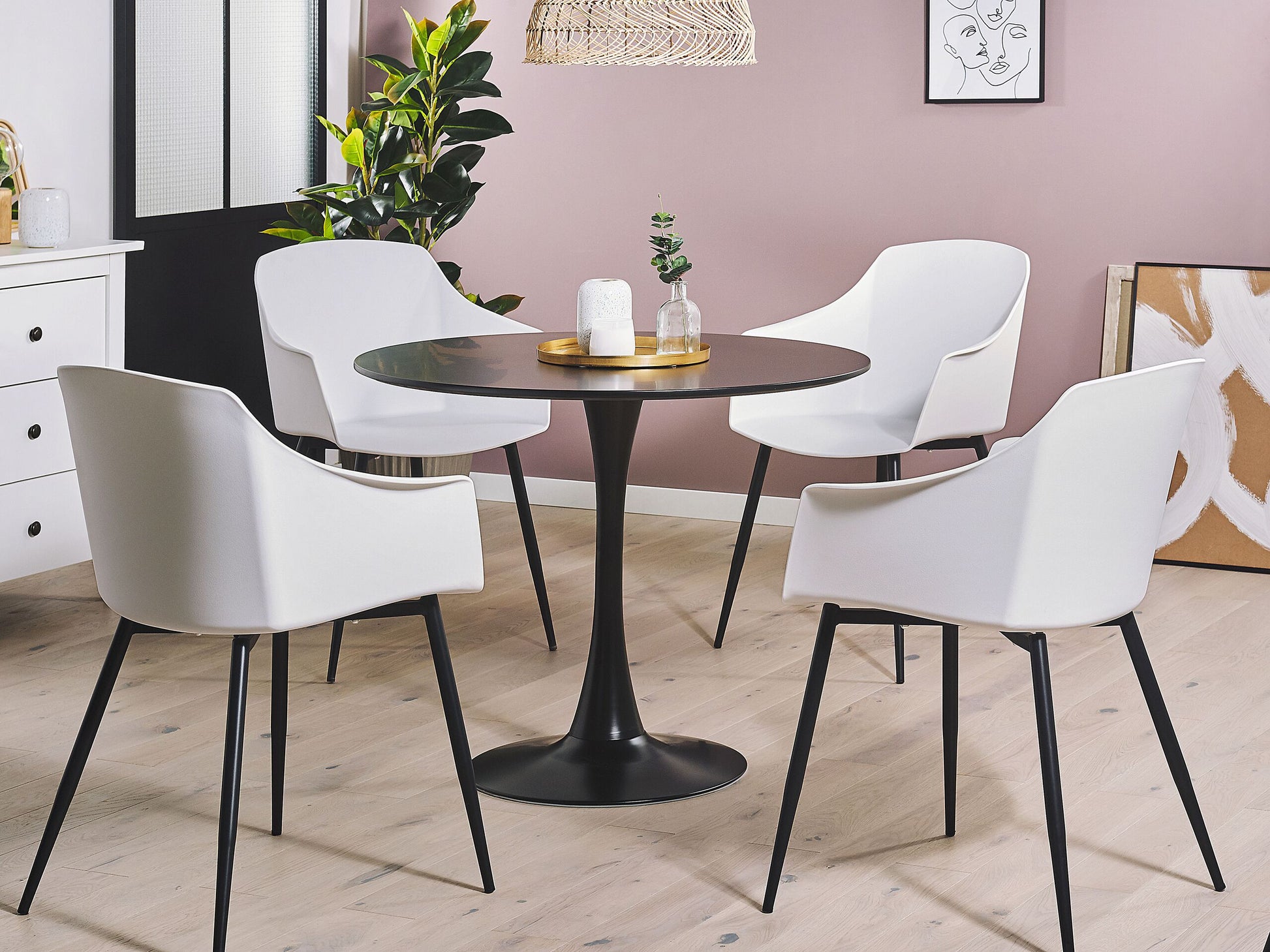 Zeitloses Design mit hohem Sitzkomfort. Dieses 2er Set verfügt über angenehme Sitzschalen aus robustem, weissem Kunststoff. Schlanke Beine aus pulverbeschichtetem Metall sorgen für einen stabilen Stand. Die praktischen und bequemen Stühle sind für jeden Wohnbereich geeignet. Vielseitig nutzbar lassen sie sich hervorragend mit anderen Einrichtungsstilen kombinieren. Material: Kunststoff. Zusätzliches Material: Metall. Gewicht: 6 Montage: Beine / Füsse nicht montiert Gewichtskapazität: 150 Sitzhöhe: 44 Das Angebot beinhaltet: 2 x Stühle Sitzfläche: 45x44 Höhe: 83 zusätzliche Information: Um sicherzustellen, dass die Konstruktion stabil und die Nutzungssicherheit gewährleistet ist, sollte man 2 Wochen nach dem Zusammenbau überprüfen, ob die Ware auch korrekt montiert wurde. Ausserdem ist alle 3 Monate zu prüfen, ob die Schrauben richtig festgezogen sind. Breite: 57 Tiefe: 51 Art: Esszimmerstuhl 2er Set Stil: Modern Allgemeine Farbe: Weiss Hauptmaterial: Kunststoff