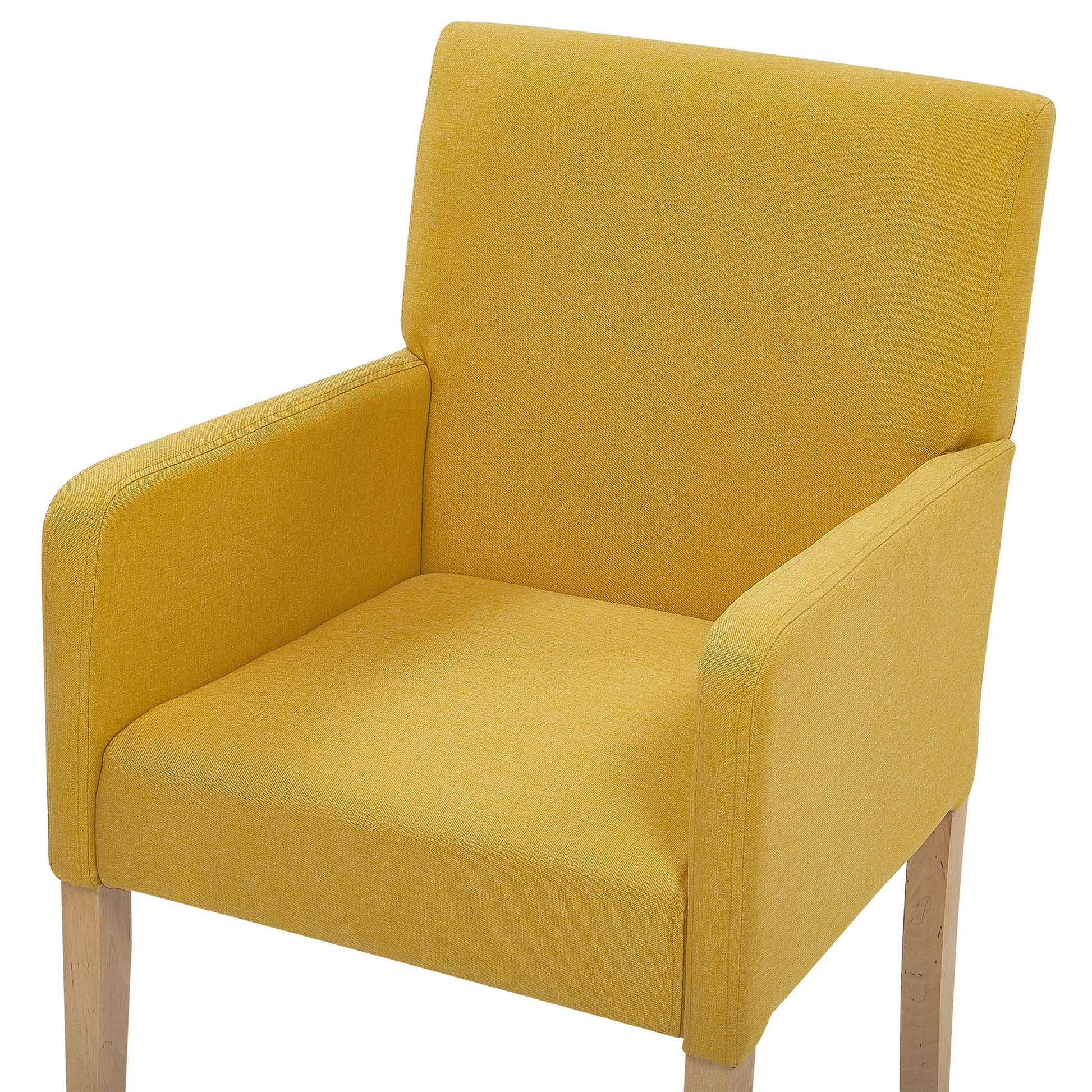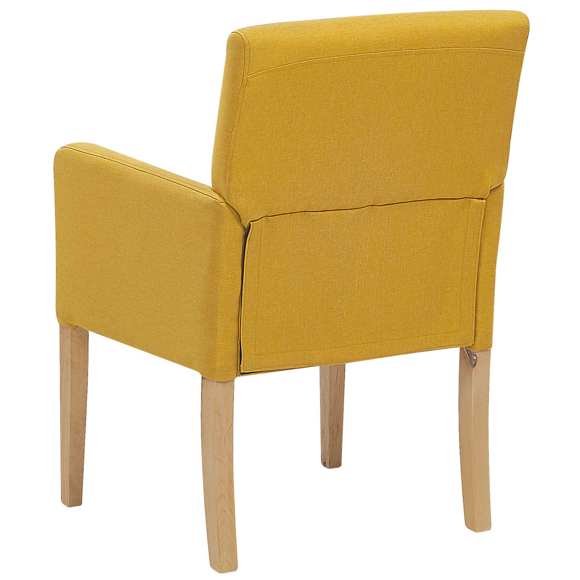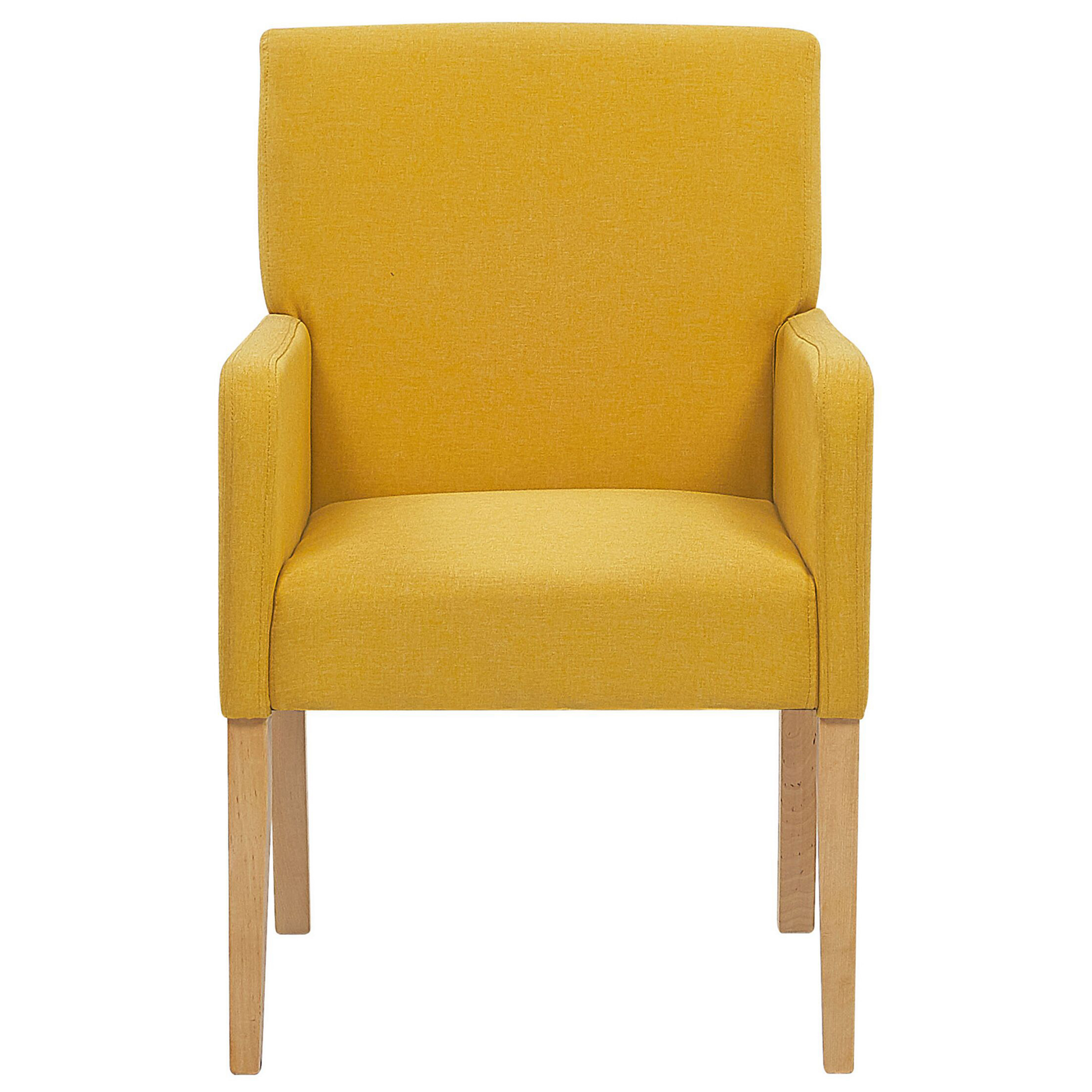 Dieser Sessel verleiht jeder Fernseh- oder Leseecke eine moderne Ausstrahlung und lässt sich schnell für einen gemütlichen Abend unter Freunden heranholen. Dank der angenehmen Sitzhöhe ist er perfekt für den Einsatz am Esszimmertisch geeignet. Der trendy Polsterstuhl besitzt einen strapazierfähigen, hochwertigen Stoffbezug, der zudem angenehm weich ist. Die 4 robusten Beine aus massivem Gummibaumholz bieten angemessenene Stabilität. Material: Polyester. Zusätzliches Material: Sperrholz, Gummibaumholz, Birkenholz. Material Zusammensetzung: 100% Polyester Gewicht: 8 Montage: Nicht montiert Holzart: Hevea brasiliensis, Betula chinensis Holzursprung: China Gewichtskapazität: 120 Polsterstärke: 12 Sitzhöhe: 45 Das Angebot beinhaltet: 1 x Stuhl Sitzfläche: 46x49 Höhe: 89 zusätzliche Information: Um sicherzustellen, dass die Konstruktion stabil und die Nutzungssicherheit gewährleistet ist, sollte man 2 Wochen nach dem Zusammenbau überprüfen, ob die Ware auch korrekt montiert wurde. Ausserdem ist alle 3 Monate zu prüfen, ob die Schrauben richtig festgezogen sind. Breite: 58 Tiefe: 60 Art: Esszimmerstuhl Stil: Retro Allgemeine Farbe: Gelb Muster: Ohne Muster Hauptmaterial: Polyester Arm Stil: Gerade