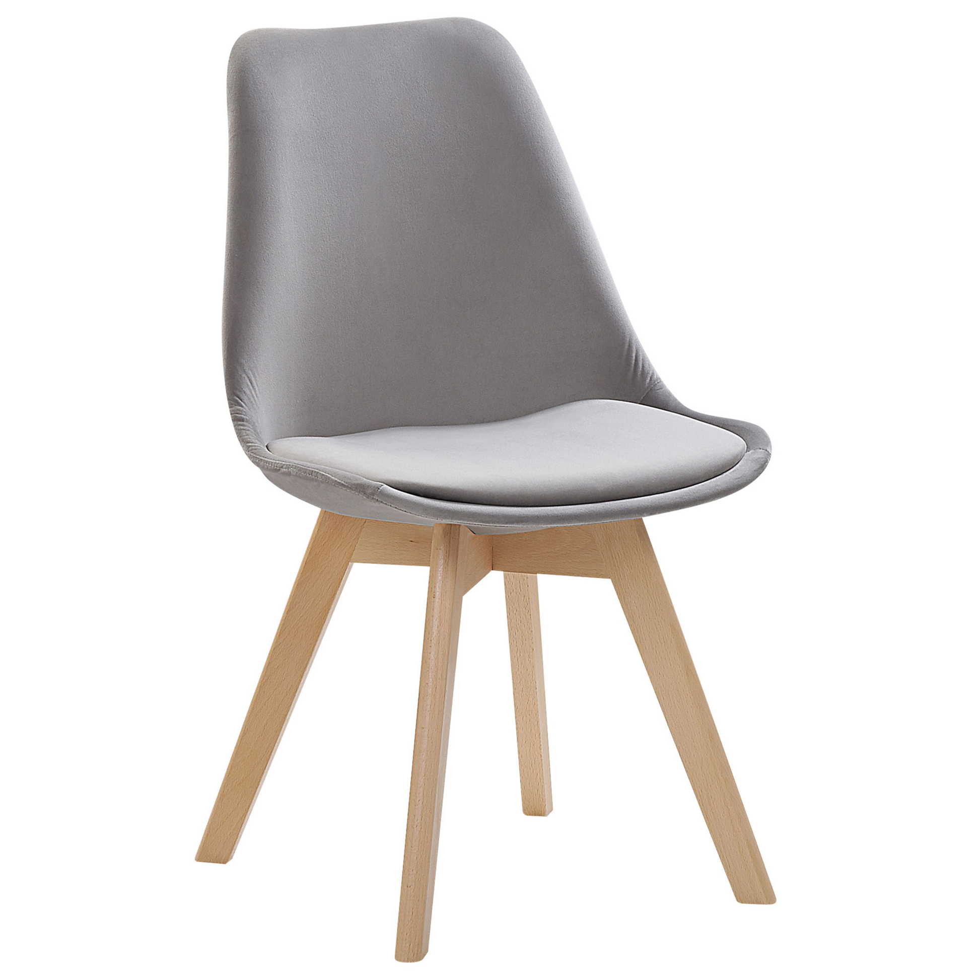 Die praktischen Stühle im angesagten Retro Design bieten mit ihrem hohen Sitzkomfort und ihrer schönen Farbkombination aus hellem Buchenholz mit ellegantem Grau vielseitige Nutzungsmöglichkeiten für alle Wohn- und Arbeitsbereiche. Die angenehm gepolsterten Sitzflächen aus hochwertigem Samtstoff in Grau laden zum entspannten Sitzen am Esstisch ein. Robuste, leicht schräg stehende Stuhlbeine sorgen für stabilen Stand. Material: Samtstoff. Zusätzliches Material: Buchenholz. Material Zusammensetzung: 100% Polyester Gewicht: 4 Montage: Beine / Füsse nicht montiert Holzart: Fagus Sylvatica Holzursprung: China Gewichtskapazität: 120 Sitzhöhe: 48 Das Angebot beinhaltet: 2 x Stühle Sitzfläche: 40x40 Höhe: 82 zusätzliche Information: Um sicherzustellen, dass die Konstruktion stabil und die Nutzungssicherheit gewährleistet ist, sollte man 2 Wochen nach dem Zusammenbau überprüfen, ob die Ware auch korrekt montiert wurde. Ausserdem ist alle 3 Monate zu prüfen, ob die Schrauben richtig festgezogen sind., Bitte beachten Sie, dass Samtstoff unter verschiedenen Lichtverhältnissen eine andere Optik haben kann – das Material schimmert bei Tageslicht stärker und wirkt bei künstlicher Beleuchtung in Innenräumen eher gedämpft. Aufgrund der glatten, hochdichten Struktur des Gewebes kann sein Farbton auch variieren, wenn man mit der Hand in verschiedene Richtungen und Winkel über den Stoff fährt. Um den Farbton auszugleichen und Druckstellen zu vermeiden, sollte der Webstoff sanft mit einer offenen Handfläche in eine Richtung gestrichen, mit einem feuchten Tuch abgewischt oder einem Dampfbügeleisen gebügelt werden. Breite: 47 Tiefe: 57 Art: Esszimmerstuhl 2er Set Stil: Modern Allgemeine Farbe: Grau Hauptmaterial: Samtstoff