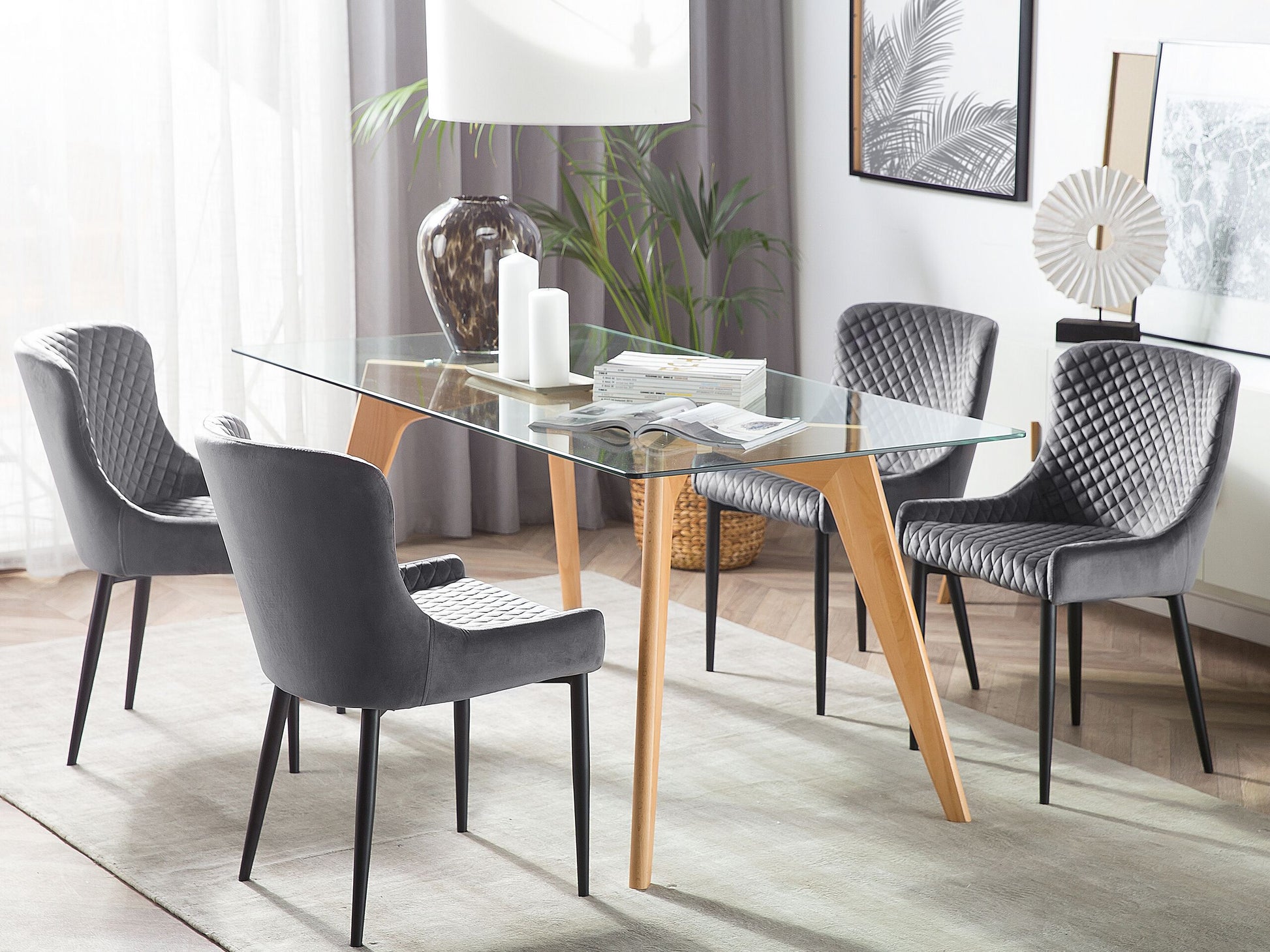 Esszimmerstuhl 2er Set SOLANO Samtstoff Grau