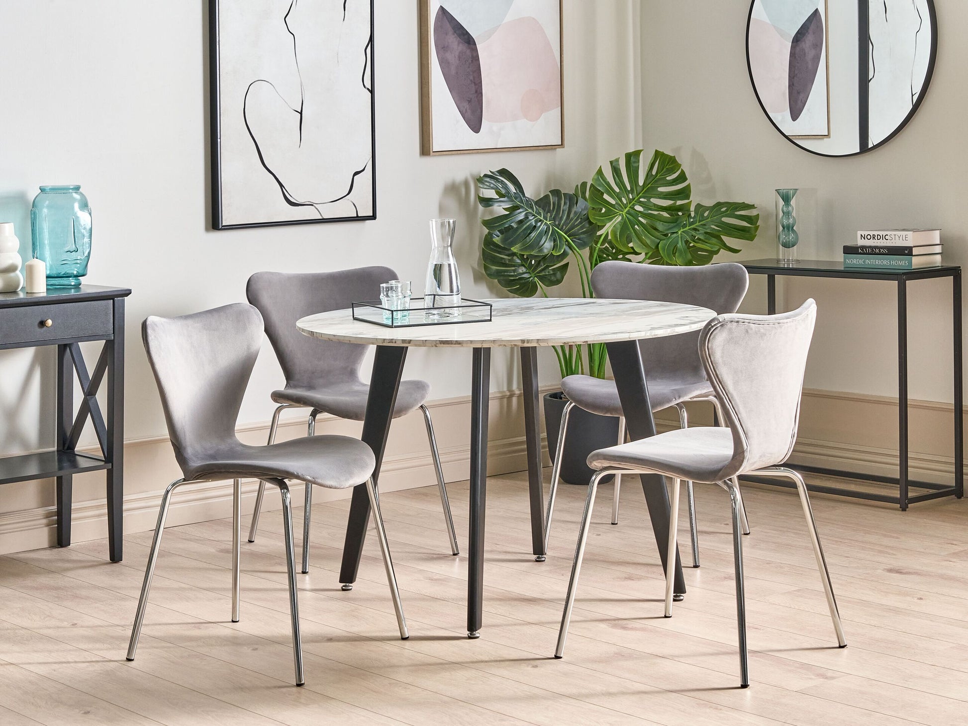 Descrizione: Modernisieren Sie den Look Ihres Essbereichs mit diesen stapelbaren Stühlen. Sie sind aus strapazierfähigem Samt gefertigt, zeichnen sich durch Langlebigkeit aus, erfordern nur wenig Pflege und lassen sich auch bei Flecken leicht reinigen. Die Küchenstühle sind mit stabilen Metallbeinen und einer breiten Sitzfläche ausgestattet, die einen hohen Sitzkomfort bietet. Beim Design wird bewusst auf die Armlehnen verzichtet, um so den zeitgemässen Look der Sitzmöbel zu unterstreichen. Dank ihrer unvergleichlichen Formschönheit passen sie zu verschiedenen modernen Einrichtungsstilen. Material: Samtstoff. Zusätzliches Material: Metall. Material Zusammensetzung: 100% Polyester Gewicht: 5 Montage: Beine / Füsse nicht montiert Gewichtskapazität: 150 Sitzhöhe: 48 Das Angebot beinhaltet: 2 x Stühle Sitzfläche: 46x40 Höhe: 82 zusätzliche Information: Um sicherzustellen, dass die Konstruktion stabil und die Nutzungssicherheit gewährleistet ist, sollte man 2 Wochen nach dem Zusammenbau überprüfen, ob die Ware auch korrekt montiert wurde. Ausserdem ist alle 3 Monate zu prüfen, ob die Schrauben richtig festgezogen sind., Bitte beachten Sie, dass Samtstoff unter verschiedenen Lichtverhältnissen eine andere Optik haben kann – das Material schimmert bei Tageslicht stärker und wirkt bei künstlicher Beleuchtung in Innenräumen eher gedämpft. Aufgrund der glatten, hochdichten Struktur des Gewebes kann sein Farbton auch variieren, wenn man mit der Hand in verschiedene Richtungen und Winkel über den Stoff fährt. Um den Farbton auszugleichen und Druckstellen zu vermeiden, sollte der Webstoff sanft mit einer offenen Handfläche in eine Richtung gestrichen, mit einem feuchten Tuch abgewischt oder einem Dampfbügeleisen gebügelt werden. Breite: 50 Tiefe: 50 Art: Set mit 2 Stühlen Stil: Skandinavisch Allgemeine Farbe: Grau Schatten: Hellgrau Hauptmaterial: Samtstoff
