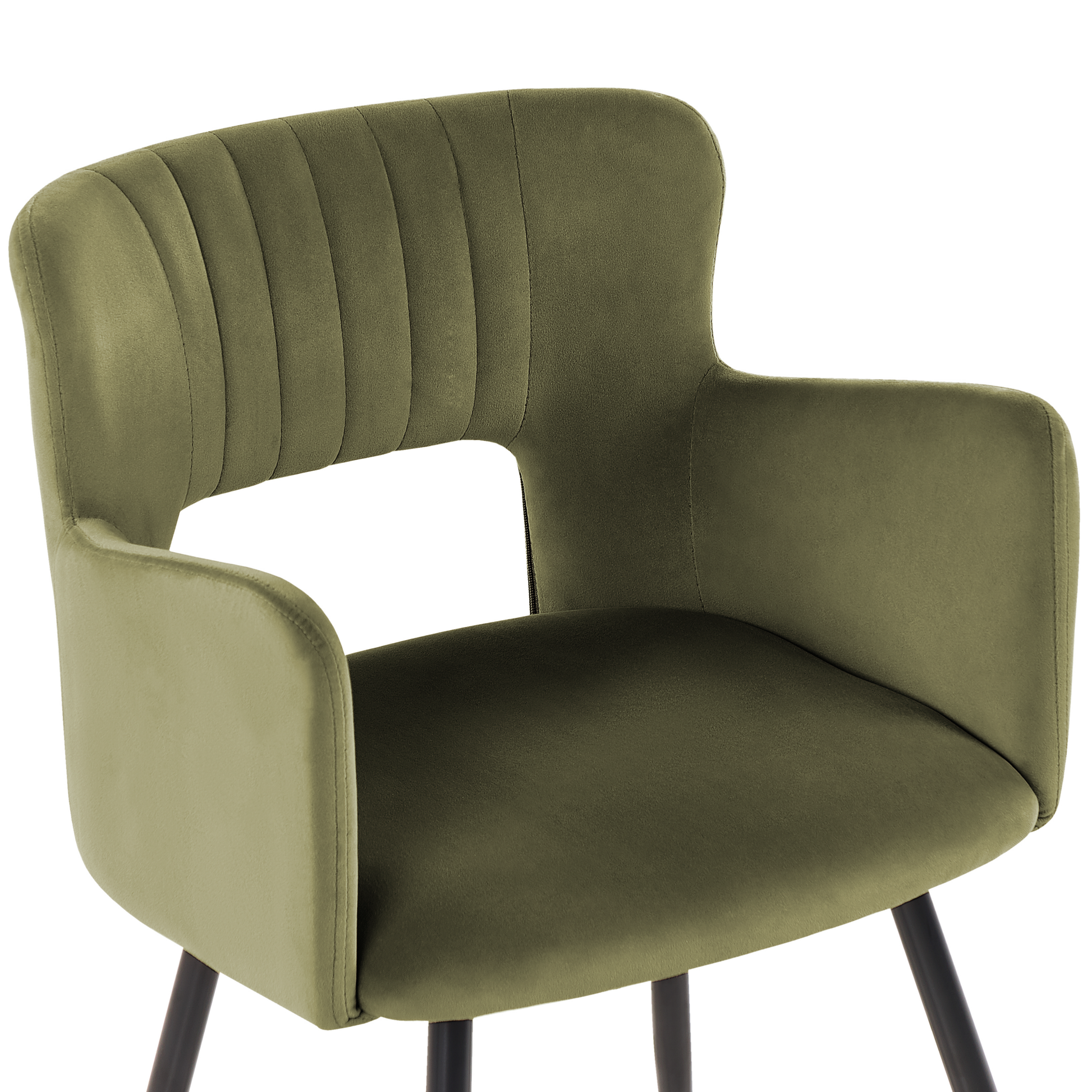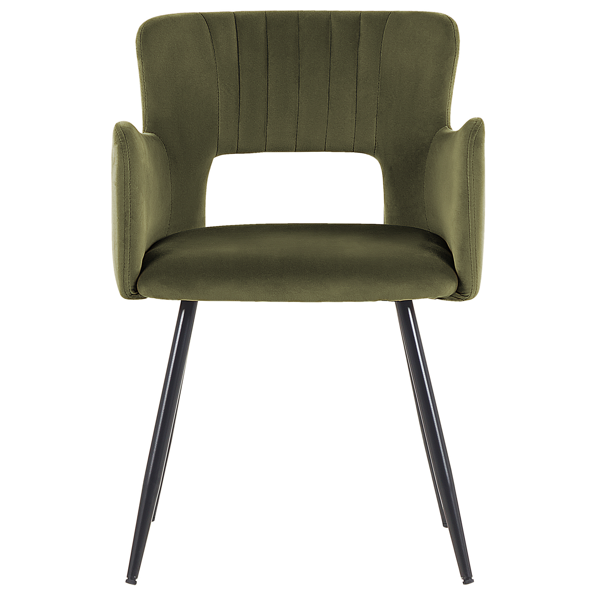 Ein Stuhl in klassischen Farben mit moderner Ausführung – die interessant geformte Rückenlehne und die samtig weiche Polsterung schaffen ein harmonisches Ganzes und machen den Stuhl zum universellen Begleiter zu Ihrem Ess- oder Schreibtisch. Die vier schmalen und dennoch stabilen Füsse, sind aus pulverbeschichtetem Metall gefertigt und verleihen dem Möbelstück eine hübsche Leichtigkeit. Material: Samtstoff. Zusätzliches Material: Eisen. Material Zusammensetzung: 100% Polyester Gewicht: 6 Montage: Beine / Füsse nicht montiert Gewichtskapazität: 120 Polsterstärke: 4 Sitzhöhe: 43 Das Angebot beinhaltet: 2 x Stühle Sitzfläche: 43x44 Höhe: 75 zusätzliche Information: Um sicherzustellen, dass die Konstruktion stabil und die Nutzungssicherheit gewährleistet ist, sollte man 2 Wochen nach dem Zusammenbau überprüfen, ob die Ware auch korrekt montiert wurde. Ausserdem ist alle 3 Monate zu prüfen, ob die Schrauben richtig festgezogen sind., Bitte beachten Sie, dass Samtstoff unter verschiedenen Lichtverhältnissen eine andere Optik haben kann – das Material schimmert bei Tageslicht stärker und wirkt bei künstlicher Beleuchtung in Innenräumen eher gedämpft. Aufgrund der glatten, hochdichten Struktur des Gewebes kann sein Farbton auch variieren, wenn man mit der Hand in verschiedene Richtungen und Winkel über den Stoff fährt. Um den Farbton auszugleichen und Druckstellen zu vermeiden, sollte der Webstoff sanft mit einer offenen Handfläche in eine Richtung gestrichen, mit einem feuchten Tuch abgewischt oder einem Dampfbügeleisen gebügelt werden. Breite: 52 Tiefe: 44 Art: Esszimmerstuhl 2er Set Stil: Modern Allgemeine Farbe: Grün Schatten: Olivgrün Hauptmaterial: Samtstoff