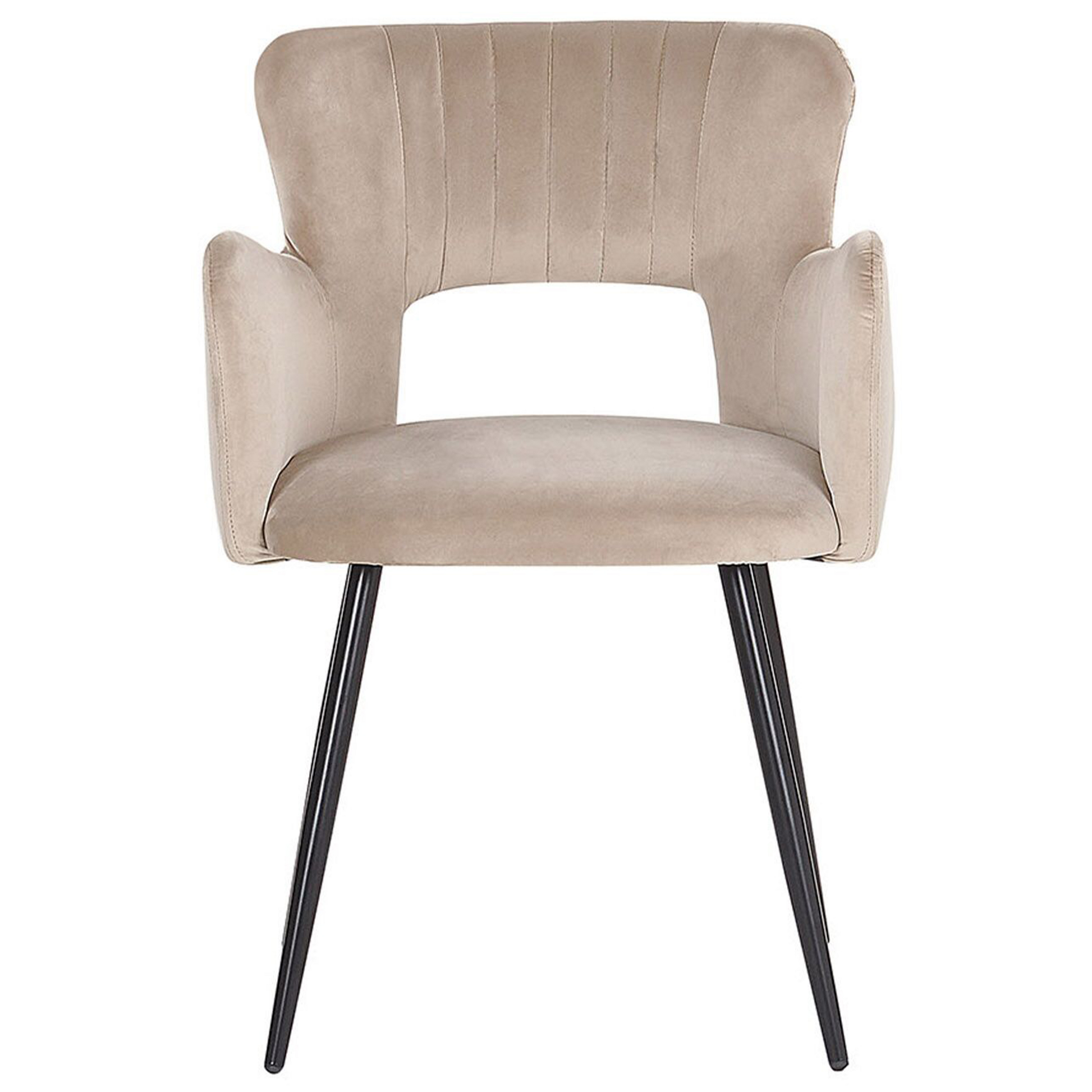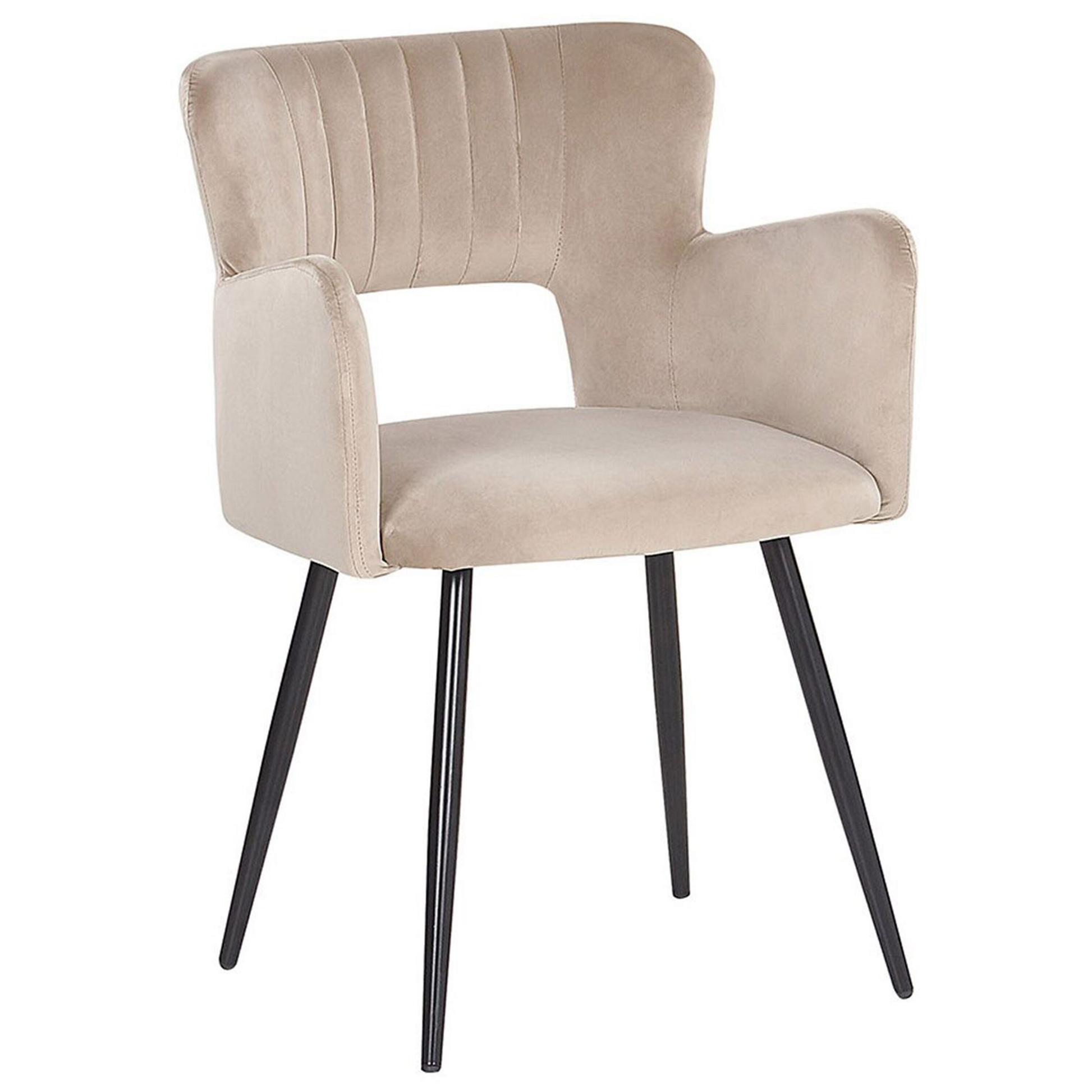 Ein Stuhl in klassischen Farben mit moderner Ausführung – die interessant geformte Rückenlehne und die samtig weiche Polsterung schaffen ein harmonisches Ganzes und machen den Stuhl zum universellen Begleiter zu Ihrem Ess- oder Schreibtisch. Die vier schmalen und dennoch stabilen Füsse, sind aus pulverbeschichtetem Metall gefertigt und verleihen dem Möbelstück eine hübsche Leichtigkeit. Material: Samtstoff. Zusätzliches Material: Eisen. Material Zusammensetzung: 100% Polyester Gewicht: 6 Montage: Beine / Füsse nicht montiert Gewichtskapazität: 120 Polsterstärke: 4 Sitzhöhe: 43 Das Angebot beinhaltet: 2 x Stühle Sitzfläche: 43x44 Höhe: 75 zusätzliche Information: Um sicherzustellen, dass die Konstruktion stabil und die Nutzungssicherheit gewährleistet ist, sollte man 2 Wochen nach dem Zusammenbau überprüfen, ob die Ware auch korrekt montiert wurde. Ausserdem ist alle 3 Monate zu prüfen, ob die Schrauben richtig festgezogen sind., Bitte beachten Sie, dass Samtstoff unter verschiedenen Lichtverhältnissen eine andere Optik haben kann – das Material schimmert bei Tageslicht stärker und wirkt bei künstlicher Beleuchtung in Innenräumen eher gedämpft. Aufgrund der glatten, hochdichten Struktur des Gewebes kann sein Farbton auch variieren, wenn man mit der Hand in verschiedene Richtungen und Winkel über den Stoff fährt. Um den Farbton auszugleichen und Druckstellen zu vermeiden, sollte der Webstoff sanft mit einer offenen Handfläche in eine Richtung gestrichen, mit einem feuchten Tuch abgewischt oder einem Dampfbügeleisen gebügelt werden. Breite: 52 Tiefe: 44 Art: Esszimmerstuhl 2er Set Stil: Modern Allgemeine Farbe: Beige Schatten: Taupe Hauptmaterial: Samtstoff