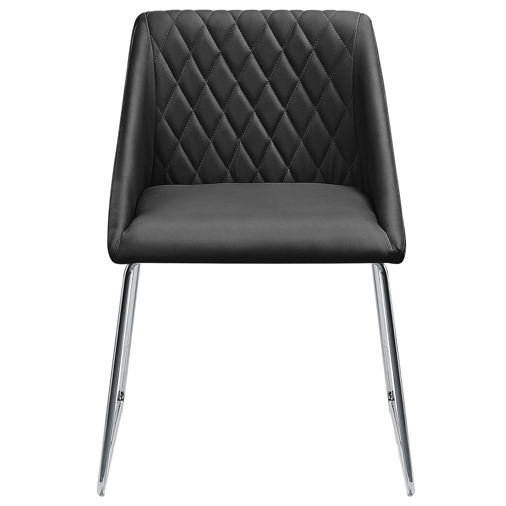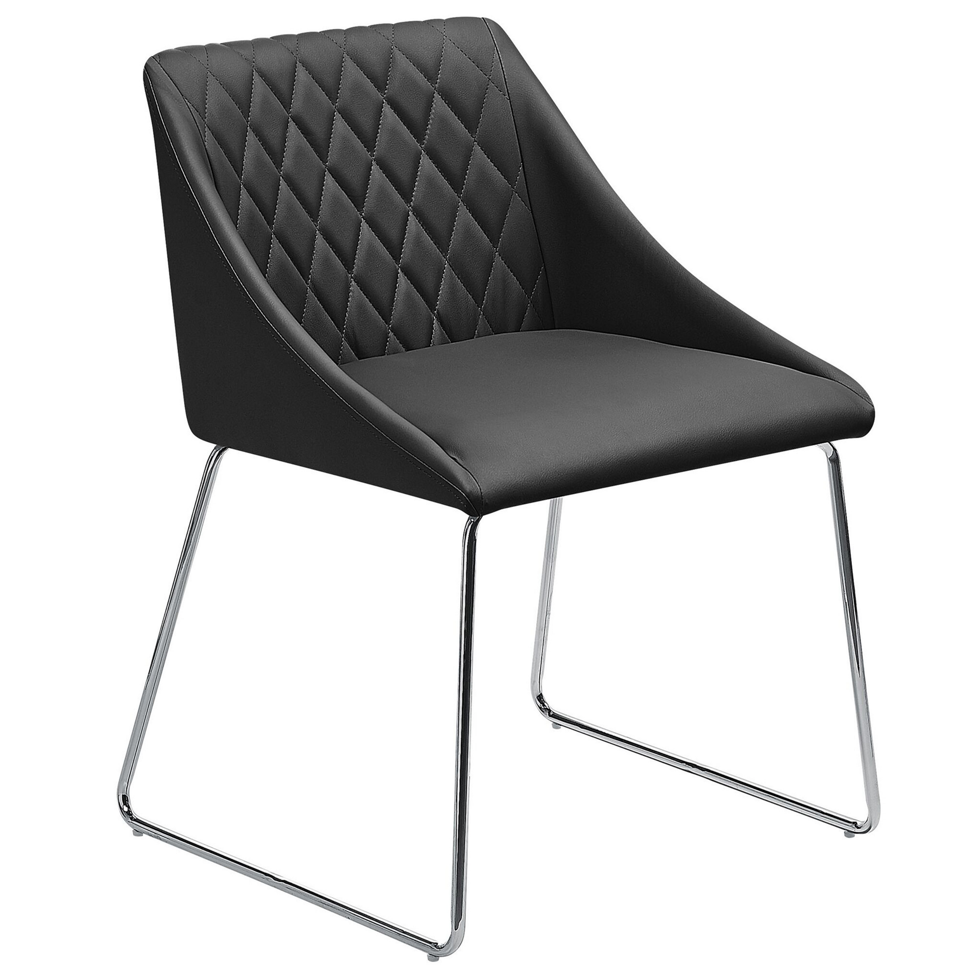 Descrizione: Eine angenehm gepolsterte Sitzschale mit einem strapazierfähigen, robusten Kunstleder in edlem Schwarz wird hier gekonnt kombiniert mit einem schlanken Gestell aus glänzenden, verchromten Metallkufen. Die moderne Formgebung der abgeschrägten Seiten und die klassische Steppverzierung auf der Rückenlehne verleihen diesen bequemen Stühlen eine wohnliche Optik. Dank ihrer exklusiven Ausstrahlung, dem trendy Design und ihrer perfekten Verarbeitungsqualität fügen sie sich mühelos in jeden Wohn- und Arbeitsbereich ein. Material: Kunstleder. Zusätzliches Material: Metall. Material Zusammensetzung: 100% Kunstleder Gewicht: 7 Montage: Beine / Füsse nicht montiert Gewichtskapazität: 120 Polsterstärke: 7 Sitzhöhe: 48 Das Angebot beinhaltet: 2 x Stühle Sitzfläche: 46x43 Höhe: 79 zusätzliche Information: Um sicherzustellen, dass die Konstruktion stabil und die Nutzungssicherheit gewährleistet ist, sollte man 2 Wochen nach dem Zusammenbau überprüfen, ob die Ware auch korrekt montiert wurde. Ausserdem ist alle 3 Monate zu prüfen, ob die Schrauben richtig festgezogen sind. Breite: 57 Tiefe: 55 Art: Esszimmerstuhl 2er Set Stil: Retro Allgemeine Farbe: Schwarz Hauptmaterial: Kunstleder