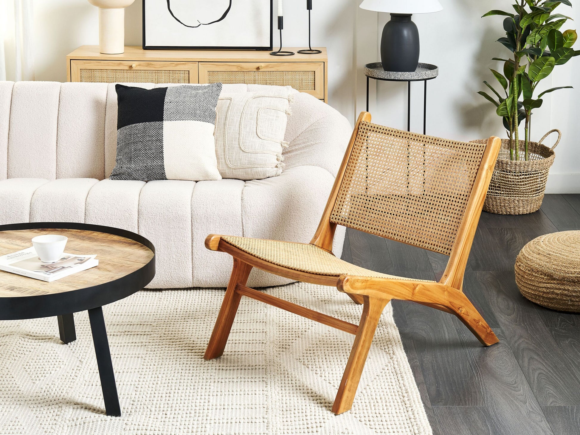 Descrizione: Dieser Stuhl ist ein echter Blickfang, der sofort zum Mittelpunkt jeder Einrichtung wird. Das Produkt ist aus hochwertigem Mahagoniholz gefertigt, das eine besondere Haltbarkeit und Stabilität garantiert. Seine schöne natürliche Farbe mit sichtbaren Mustern und das dekorative Wiener Rattangeflecht sorgen für ein schönes Boho Flair, das jeden Raum verschönern wird.  Material: Mahagoniholz. Zusätzliches Material: Rattan. Gewicht: 6 Montage: Benötigt keine Montage Holzart: Swietenia mahagoni, Calamus Holzursprung: Indonesien Gewichtskapazität: 100 Sitzhöhe: 42 Das Angebot beinhaltet: 1 x Stuhl Sitzfläche: 60x45 Höhe: 72 Breite: 60 Tiefe: 83 Art: Esszimmerstuhl Stil: Boho Allgemeine Farbe: Naturfarben Hauptmaterial: Mahagoniholz
