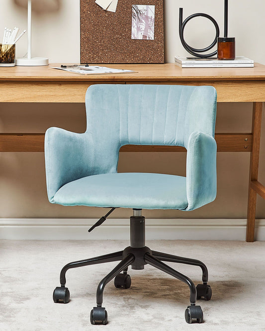 Bürostuhl Samtstoff hellblau höhenverstellbar SANILAC