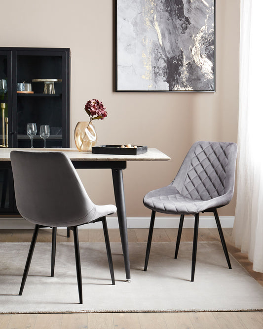 Esszimmerstuhl 2er Set MARIBEL Samtstoff Grau